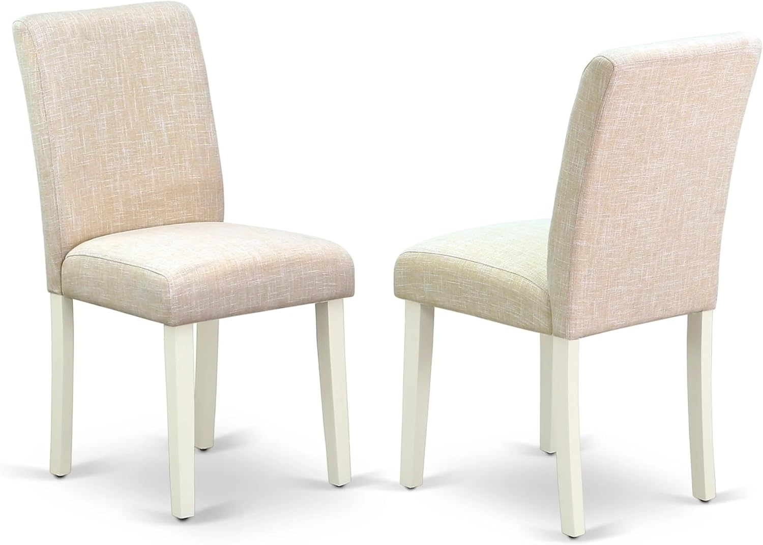 - MODERN DINING TABLE SET FINISH: The kitchen set comprises a dining table crafted from solid wood and finished in Linen White, along with dining chairs that exquisite upholstery in Light Beige Linen Fabric for both the seat and backrest. This arrangement imbues the dining room with an elevated sense of refinement and enhances its aesthetic appeal. The luxurious color scheme of this set exudes an air of opulence, elevating the overall ambiance of the dining area.
