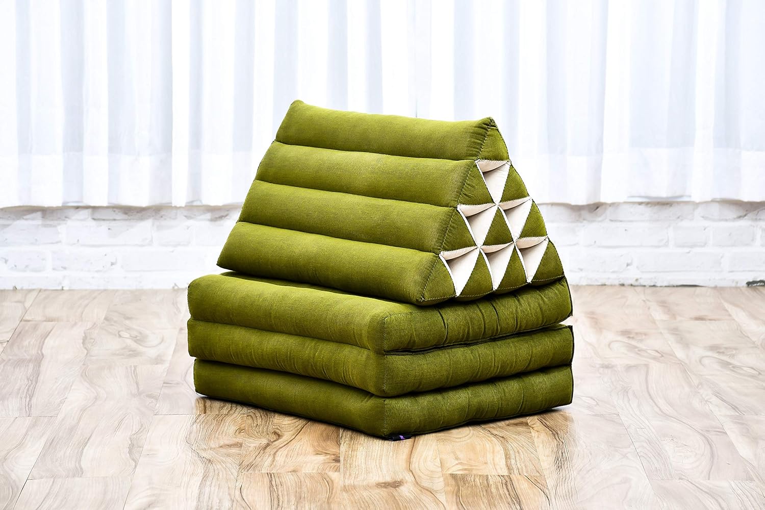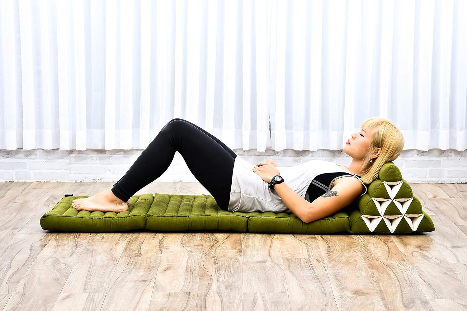 Leewadee - Comfortable Japanese Floor Mattress - Thai Floor Bed with Triangle Cushion - Futon Mattress - Thai Massage Mat, 67 x 21 inches, Green, Kapok Filling