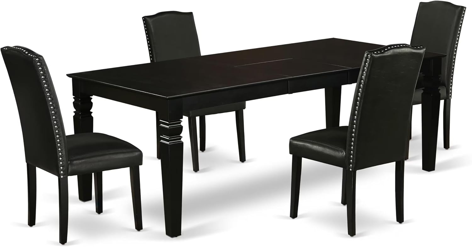 East West Furniture LGEN5-BLK-69 5 Piece Dining Table Set Includes a Rectangle Dining Room Table with Butterfly Leaf and 4 Black Faux Leather Parsons Chairs, 42x84 Inch, Black