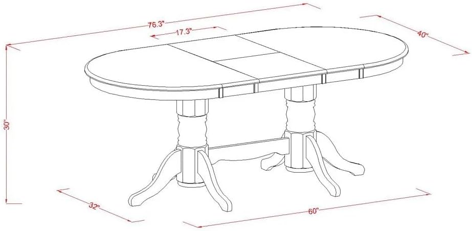 - ITEM DIMENSIONS: The Kitchen Table Dimensions: Length: 76.3/59; Width: 40; Height: 30. chair dimensions: Length: 22; Width: 17.20; Height: 35.20.