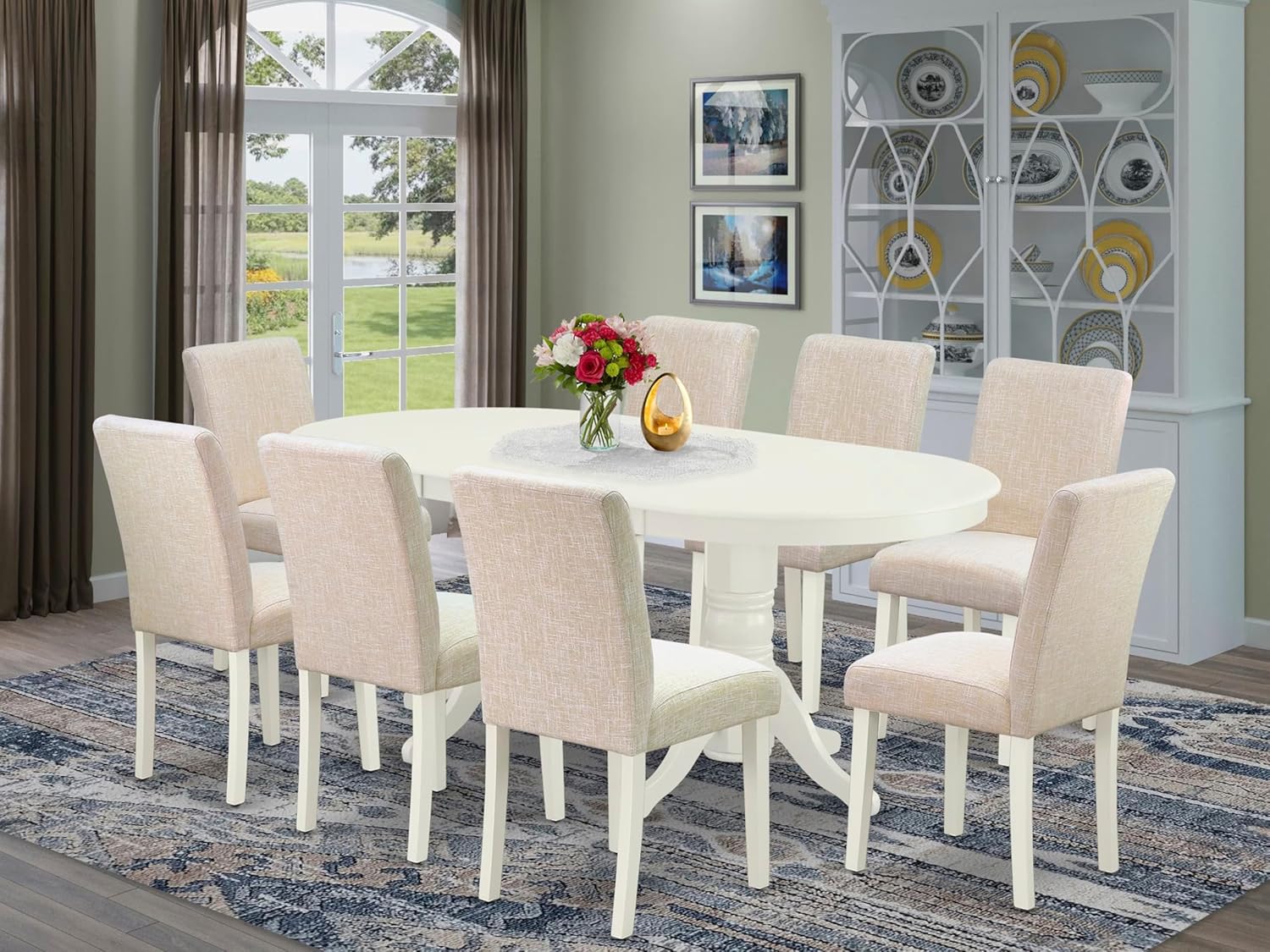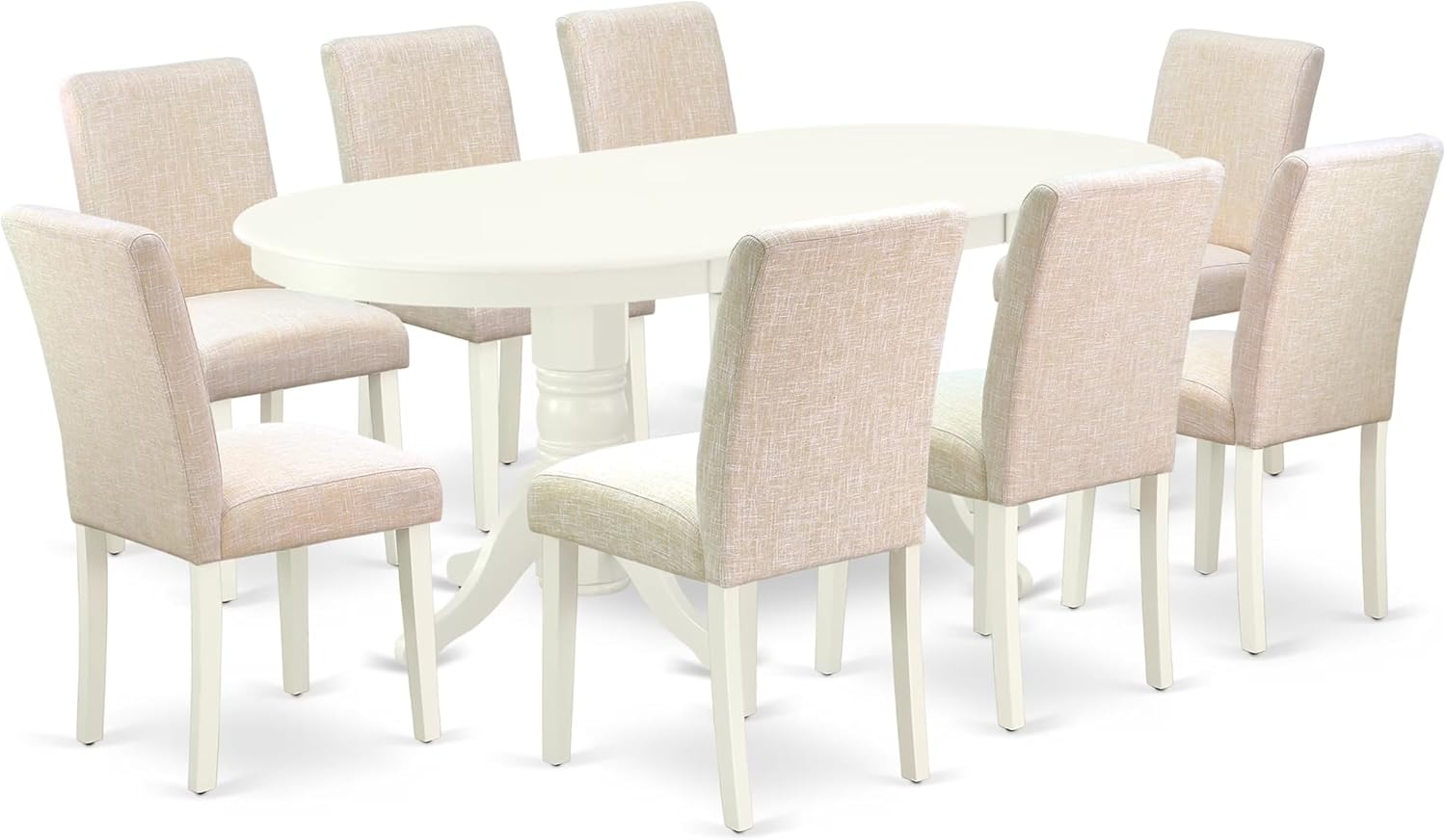 East West Furniture VAAB9-LWH-02 9 Piece Dining Room Set Includes an Oval Wooden Table with Butterfly Leaf and 8 Light Beige Linen Fabric Parson Dining Chairs, 40x76 Inch, Linen White