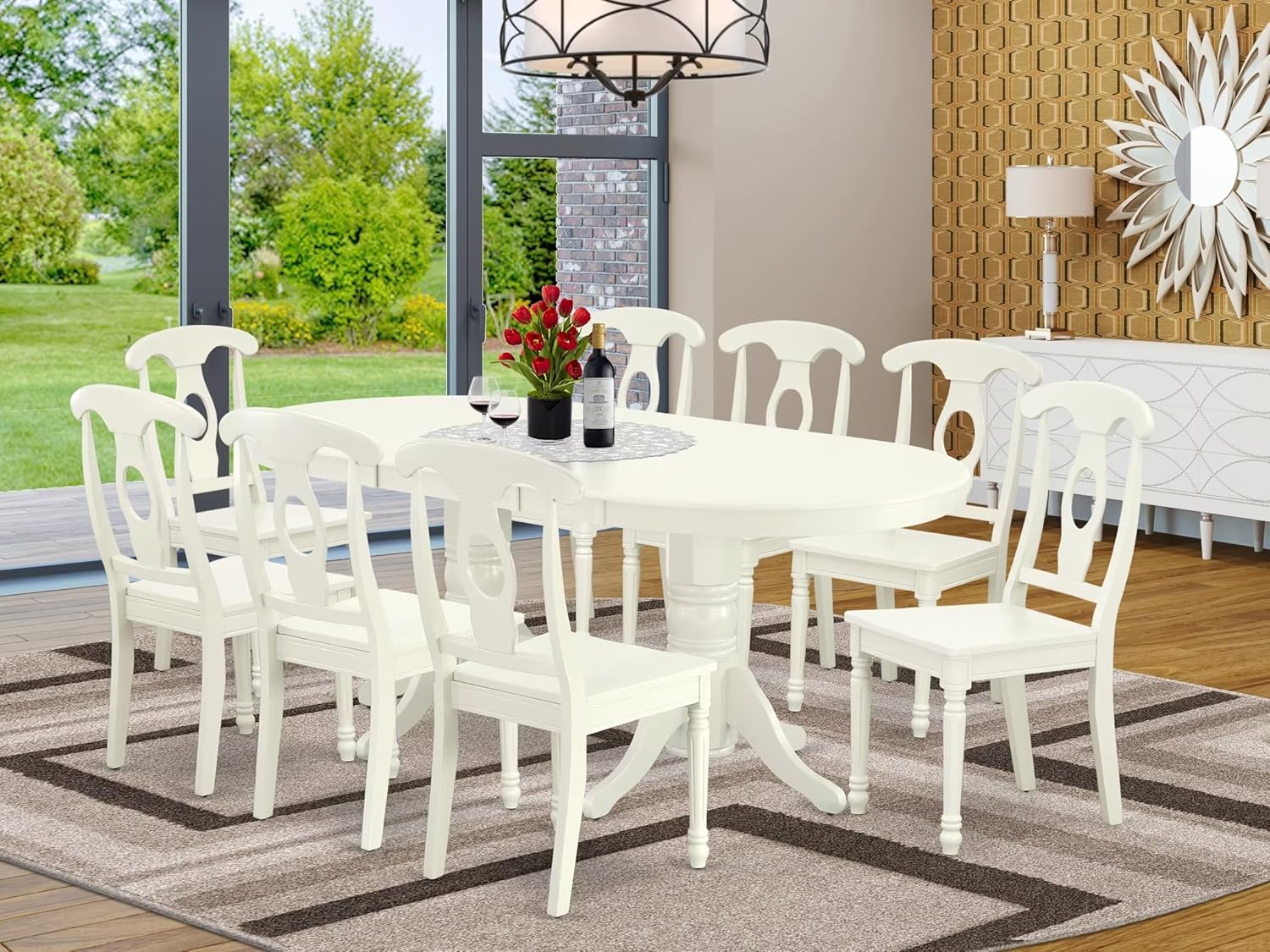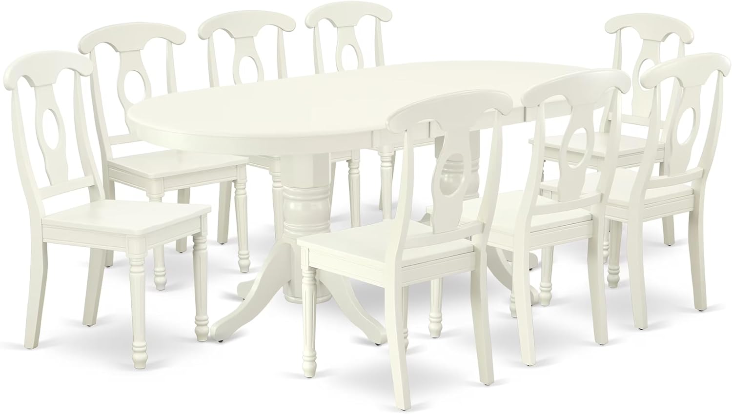 East West Furniture VAKE9-LWH-W 9 Piece Dining Set Includes an Oval Dining Table with Butterfly Leaf and 8 Kitchen Chairs, 40x76 Inch, Linen White