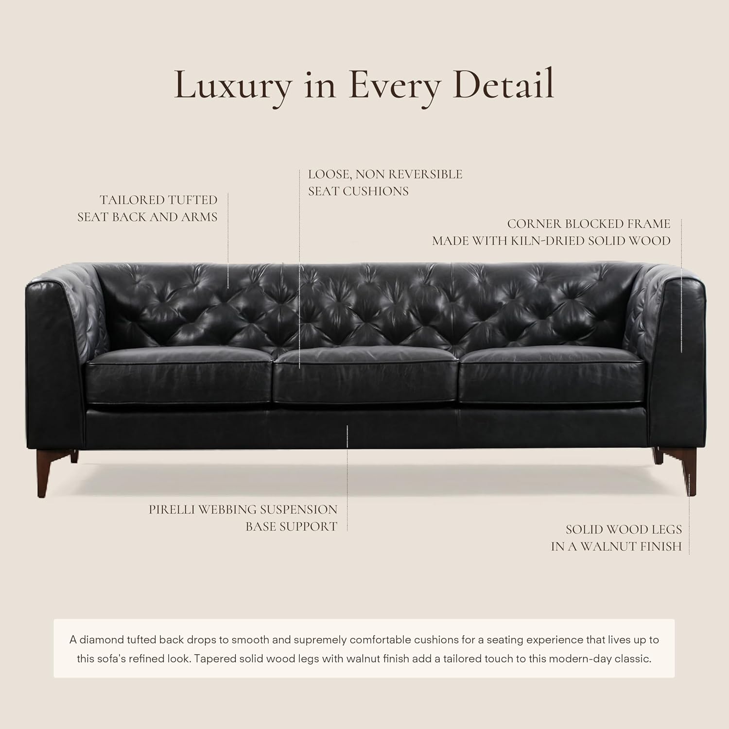 Poly & Bark Essex Leather Couch - 89-Inch Sofa with Tufted Back - Full-Grain Leather Sofa for Living Room with Feather-Down Topper - Living Room Couch - Vintage Italian Leather in Onyx Black