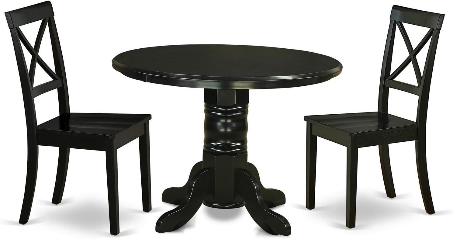 East West Furniture SHBO3-BLK-W 3 Piece Dining Room Furniture Set Contains a Round Kitchen Table with Pedestal and 2 Dining Chairs, 42x42 Inch, Black