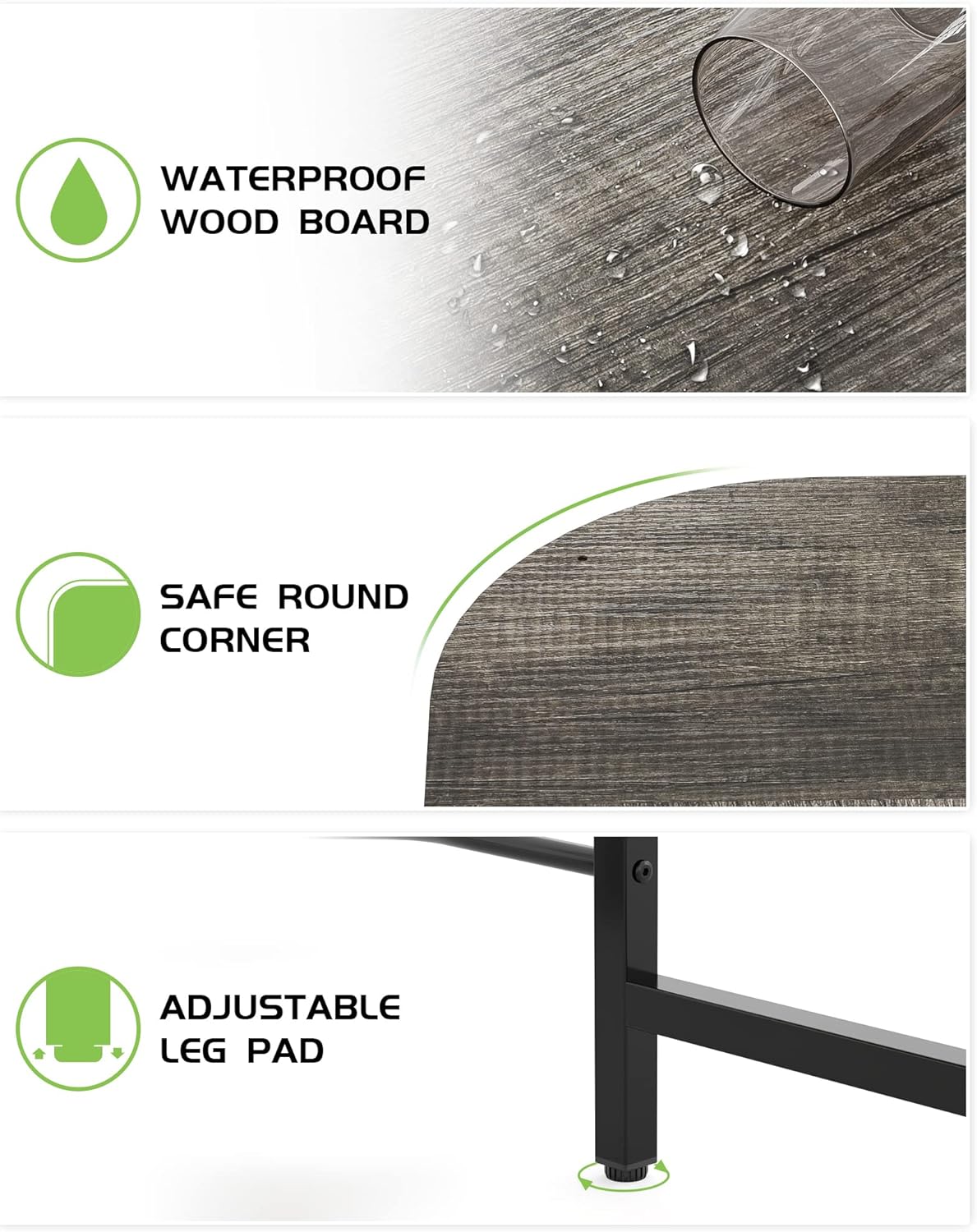 - Super Durable and Sturdy: Made of P2 class partial board with perfect edge technology plus thicker steel frame, which can ensure strength and durability. Designed with adjustable leg pads for different height need, to keep the desk stable balance on the uneven floor and carpet.