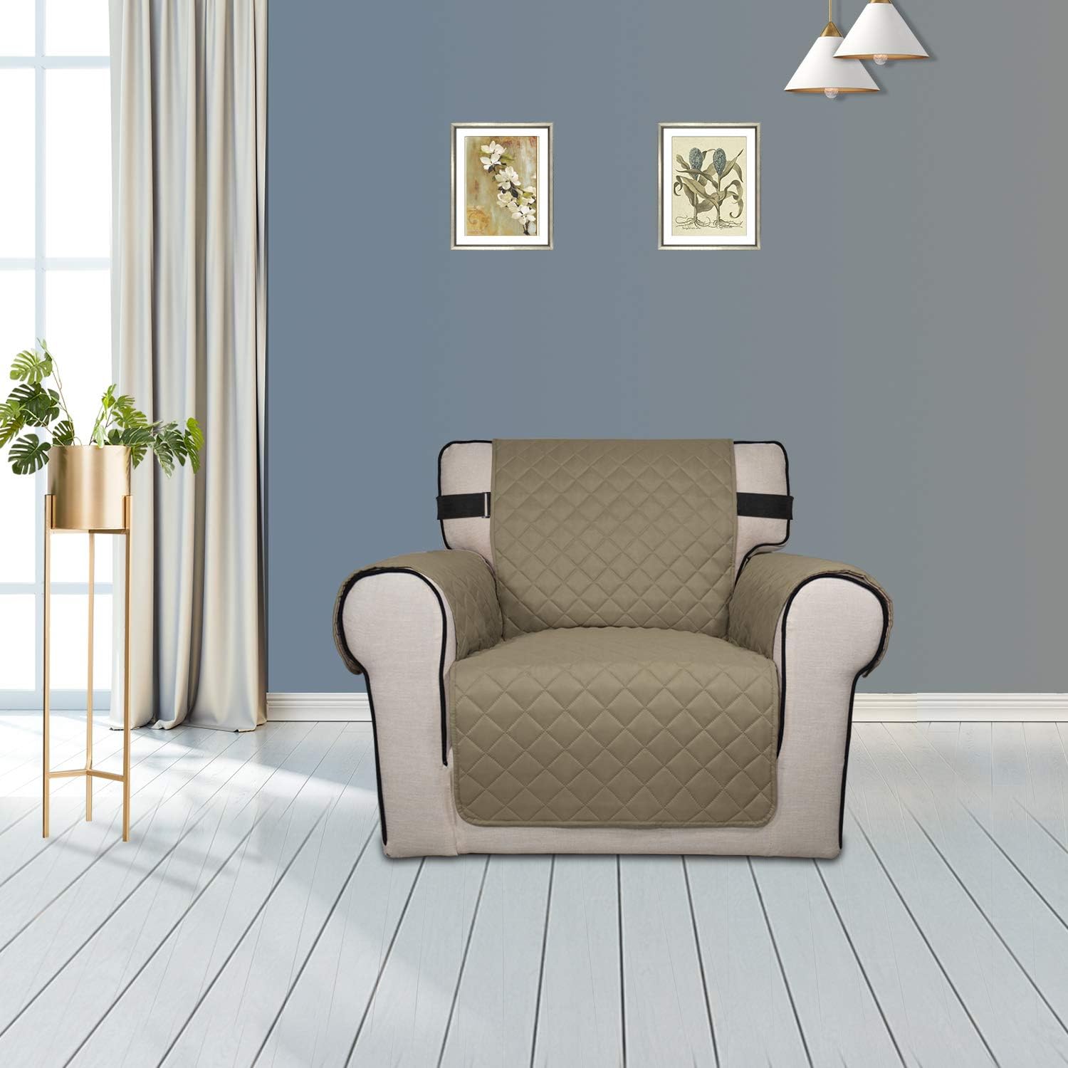 PureFit Reversible Sofa Cover Water Resistant Chair Couch Cover, Machine Washable Furniture Cover with Non-Slip Foam and Adjustable Strap for Dogs, Pets (Chair, Beige/Ivory)