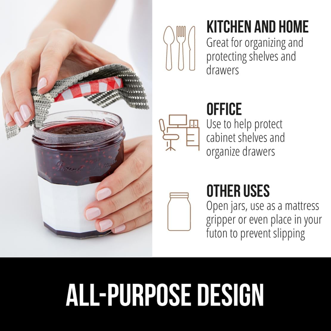 - KITCHEN, OFFICE, OR BATHROOM: liner can be used in several areas of your home; use it in your kitchen, pantry, work station, office room, laundry room, bathroom vanity shelves and more; perfect for organizing your space and home; use any excess liner pieces for opening jars and can also work great for a slipping futon, couch cushions, or mattresses