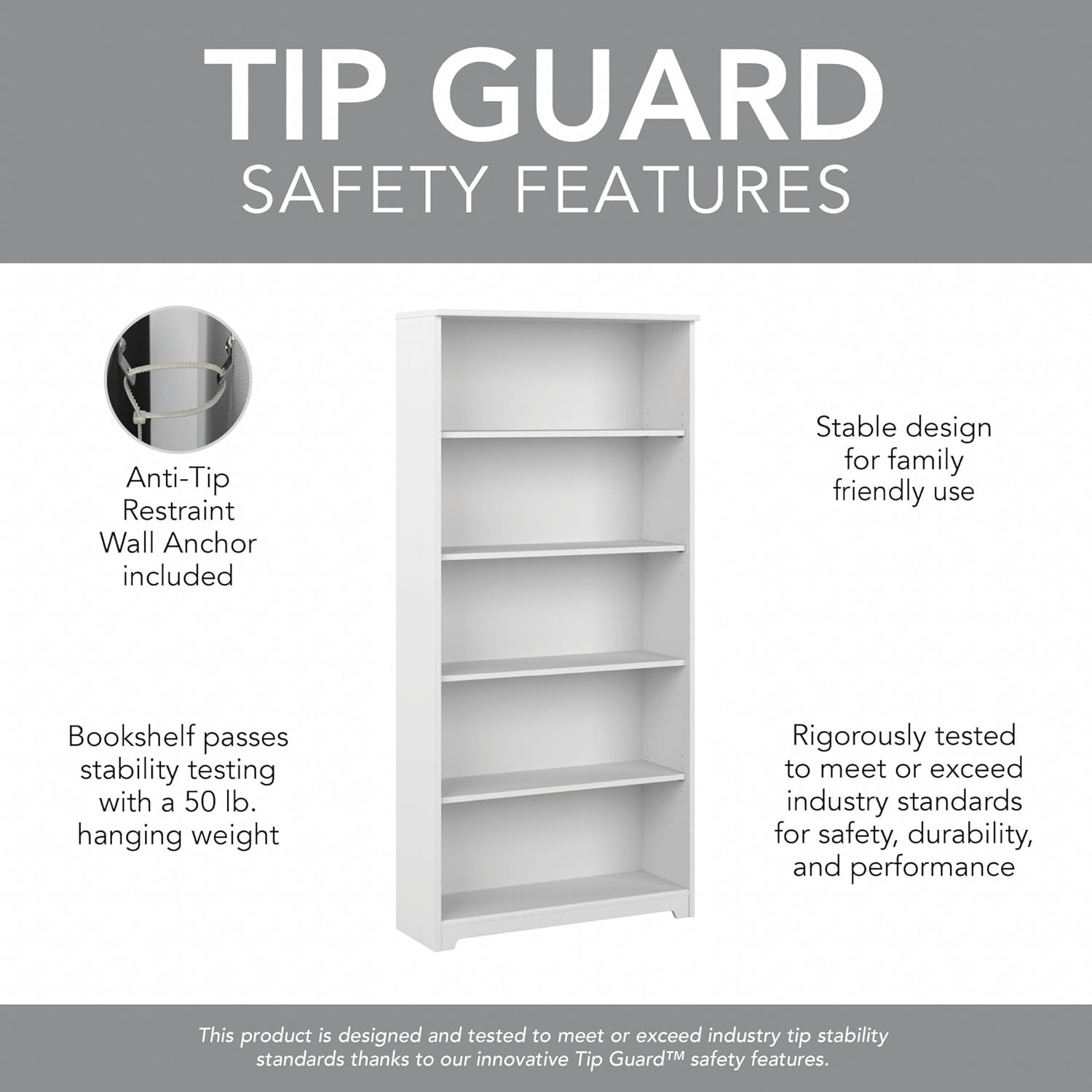 Bush Furniture Tall 5 Shelf Bookcase, Large Open Bookshelf, Sturdy Display Cabinet for Living Room or Home Office, Cabot Collection, White