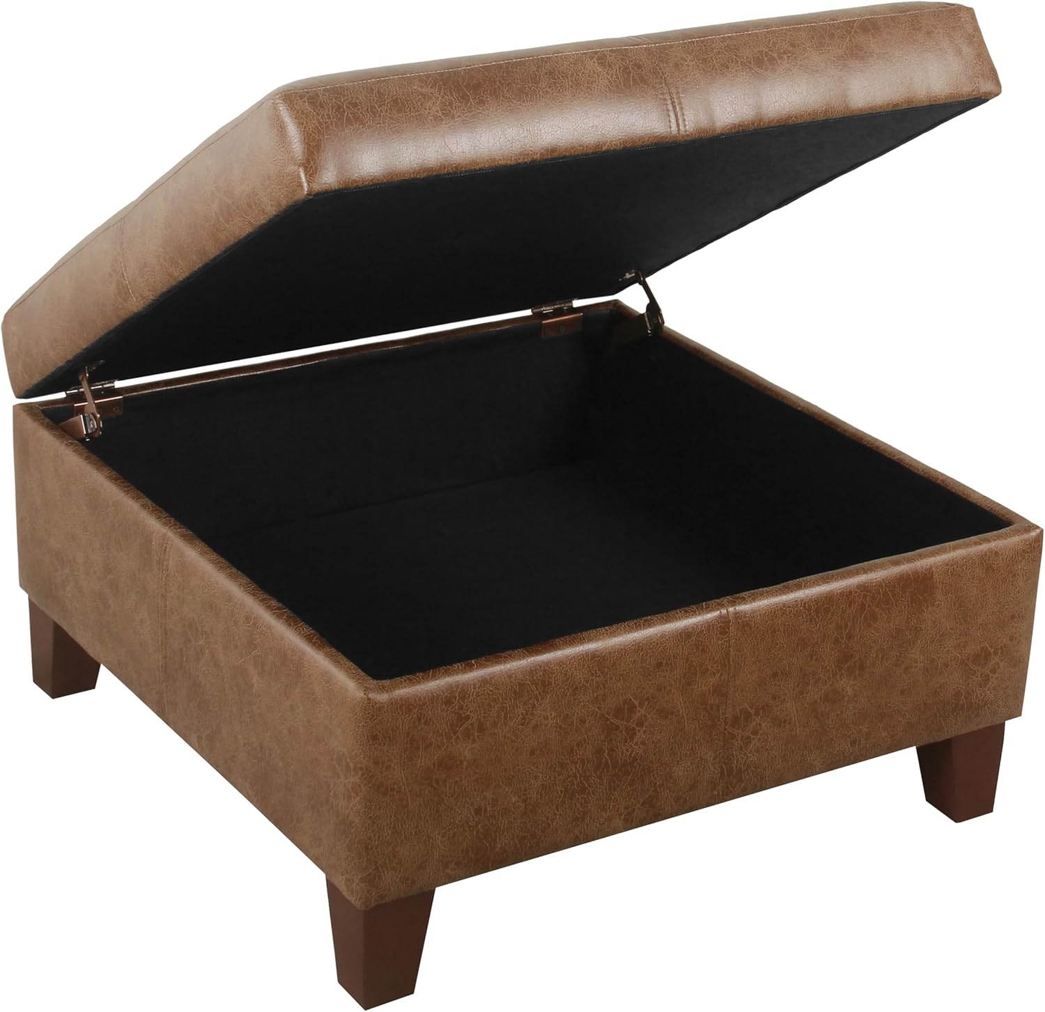 - STORAGE OTTOMAN: With it's rich Faux Leather our Square Ottoman with Storage can be used as a Coffee Table Ottoman | Perfectly completed with tapered wood legs in a rosewood finish along with stitching details for added interest