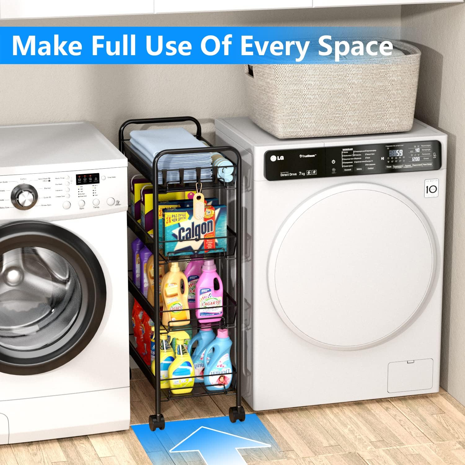- Large Storage Capacity: This mesh wire cart with 4 deep baskets and 4 hanging side hooks,provide spacious capacity to store your home supplies. 2.3inch curled edge protection design to prevent objects from falling and provides space for a large number of items to optimize space utilization.Mesh design allows air circulation.