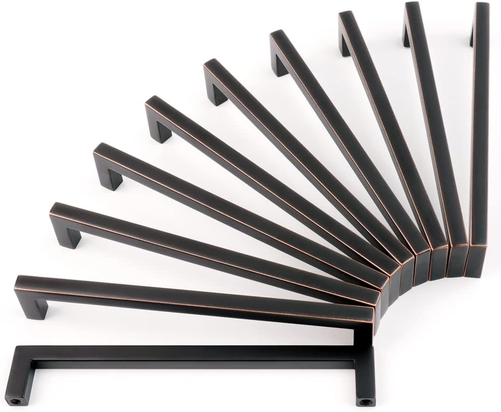 - Pack of 10 oil rubbed bronze square bar cabinet pull handles, solid metal hardware.