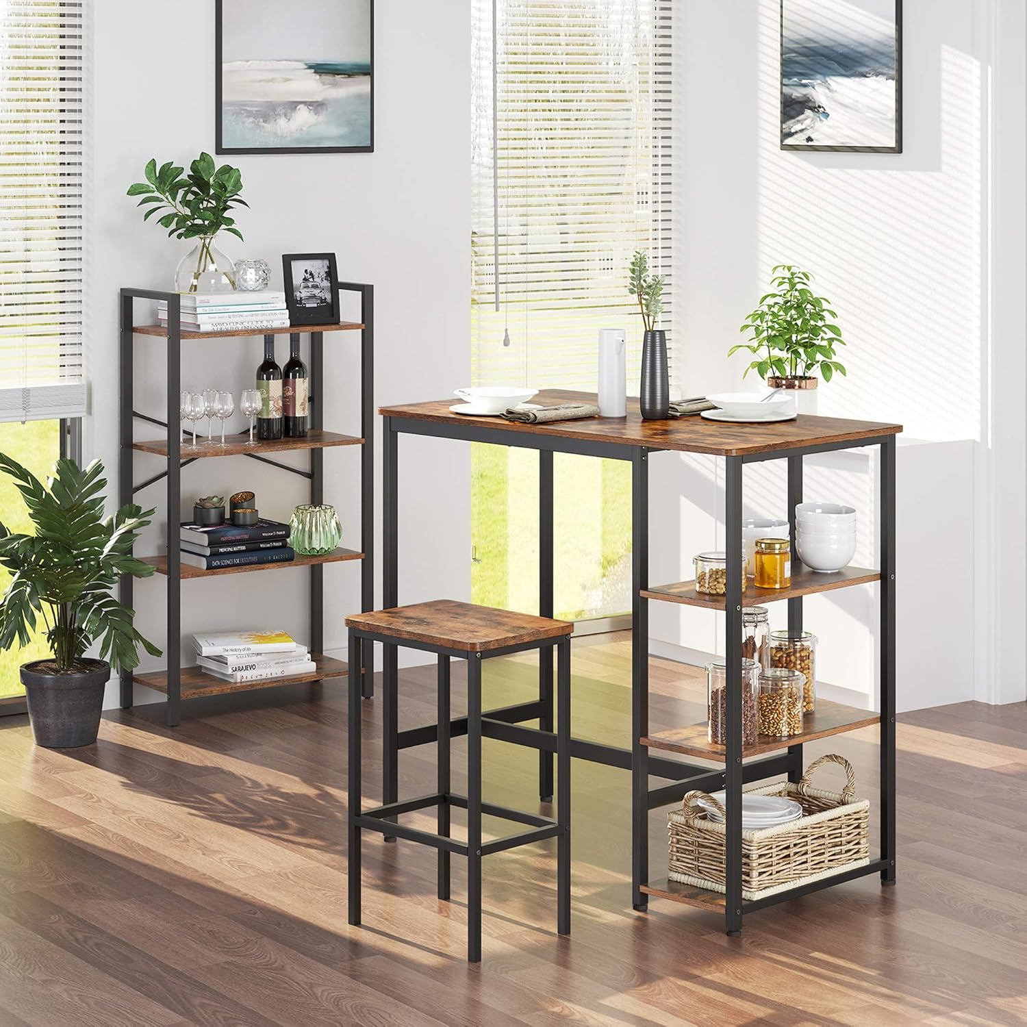 - What an Appetizing Show: This bar table with 3 rustic brown engineered wood shelves adds an industrial touch to your dining area. Enjoy delicacies in a stylish atmosphere!
