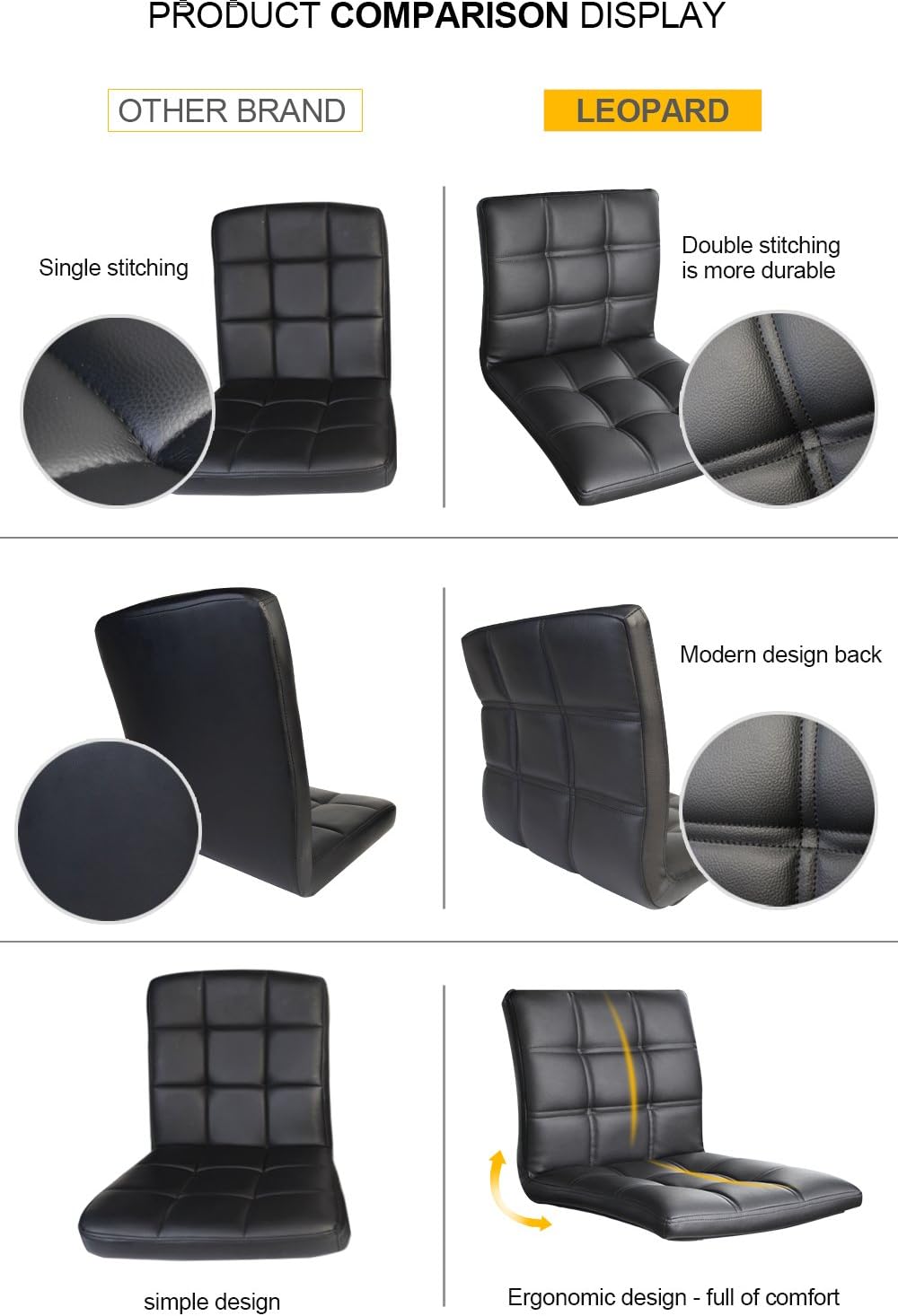 Leopard Modern Square PU Leather Adjustable Bar Stools with Back, Squre Back Bartool, Counter Height Swivel Stool, 1 Chair (Black)
