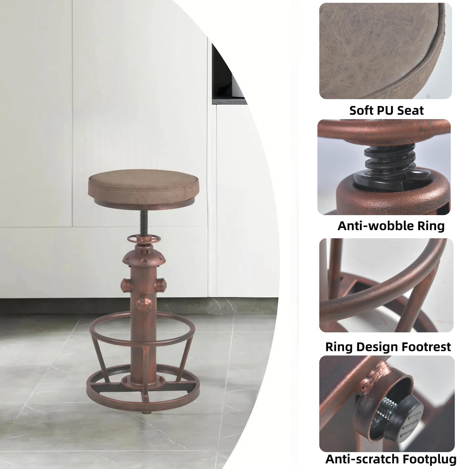 - Handcraft-Powder coating craft protect bar stool from rust; Chair feet are fitted with rubber, avoid scratching the floor. TWO-TONE FINISH: Brown and Gray are the perfect blend for industrial-chic style to flourish. Plus, the planked look on the seat adds even more urban oomph to your decor. They are adjustable leg height, so that makes them very versatile.