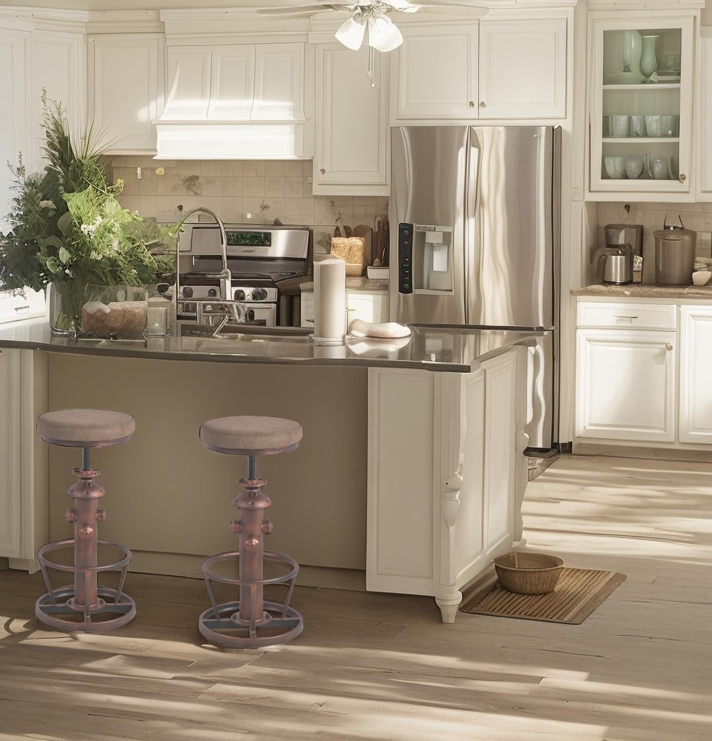- Dimension- Seat Thickness:5cm/2inch; Seat diameter: 35cm/13.8inch; Height Adjustable:65-80cm/25.6-31.5inch, can meet your needs, whether your bar or counter.