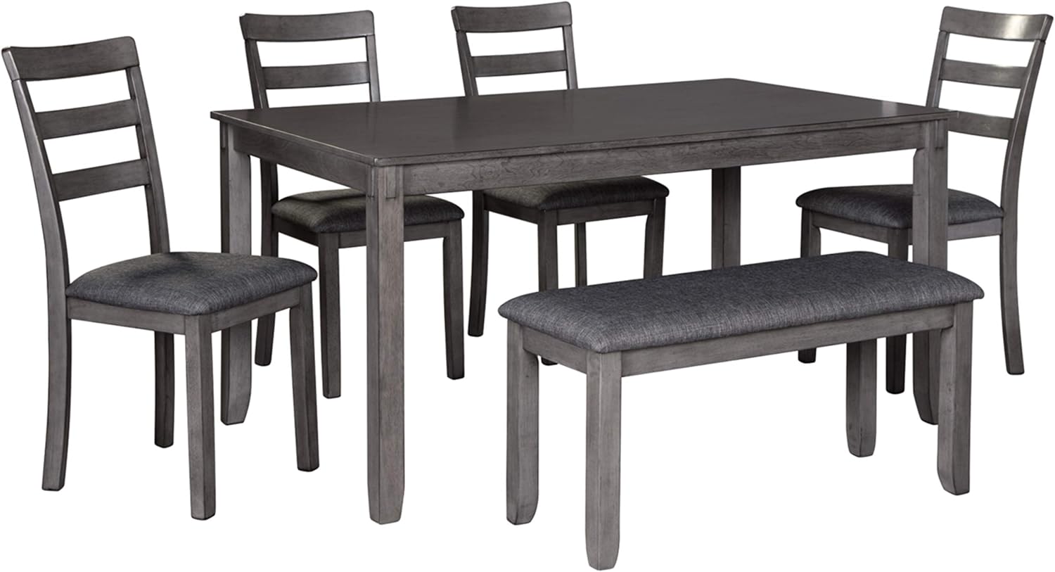 Signature Design by Ashley Bridson Modern 6 Piece Dining Set, Includes Dining Table, 4 Chairs & Bench, Gray