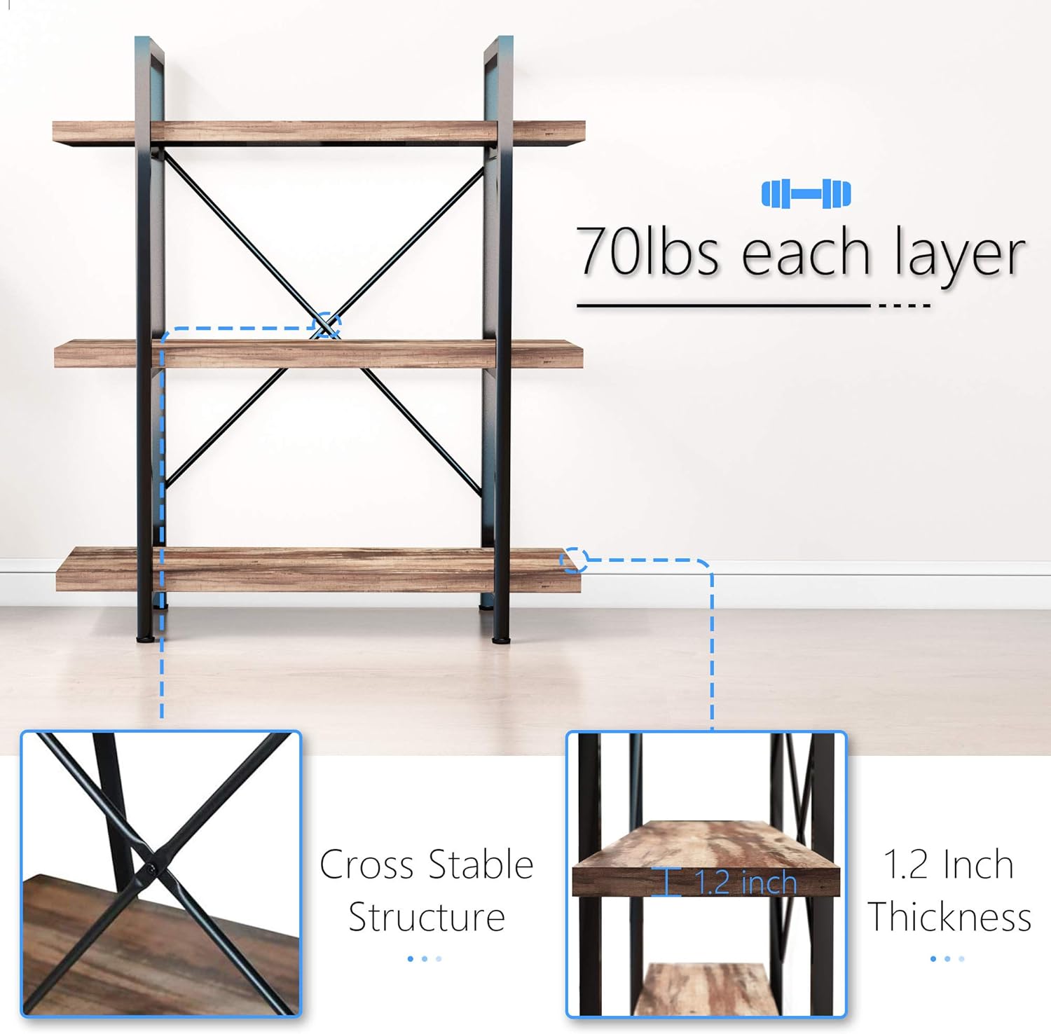 45MinST 3-Tier Vintage Industrial Style Bookcase/Metal and Wood Bookshelf Furniture for Collection,Vintage Brown, 3/4/5 Tier (3-Tier)