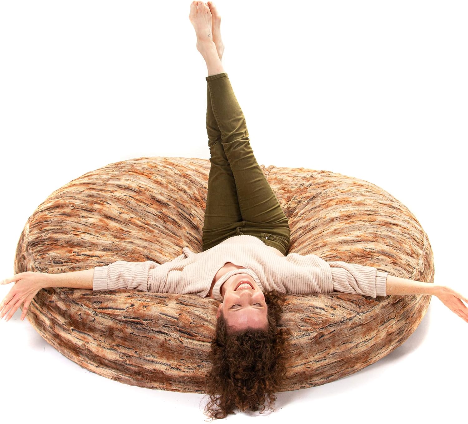 - Giant Six-foot multi-functional bean bag lounger with premium faux fur cover. Extremely plush luxe fur cover is silky smooth to the touch and padded for extra comfort. The Cocoon features 2 positions; lay it down flat like a giant bean bag bed, or flip it on its side for a supremely comfy bean bag chair that surrounds you in comfort