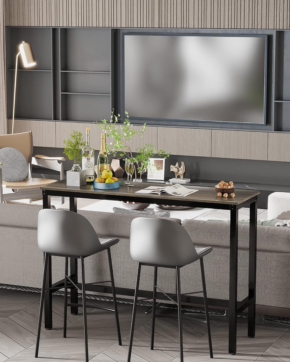 - 【Easy to Assemble and Clean】All you need do is assemble the legs, you can assembly a wonderful bar height table bar table in a few minutes; instructions, screws, and tools are provided. And you also can disassembly the footrest and store things under the table. The tabletop surface features classic texture that is waterproof, scratch-resistant, and easy to clean.