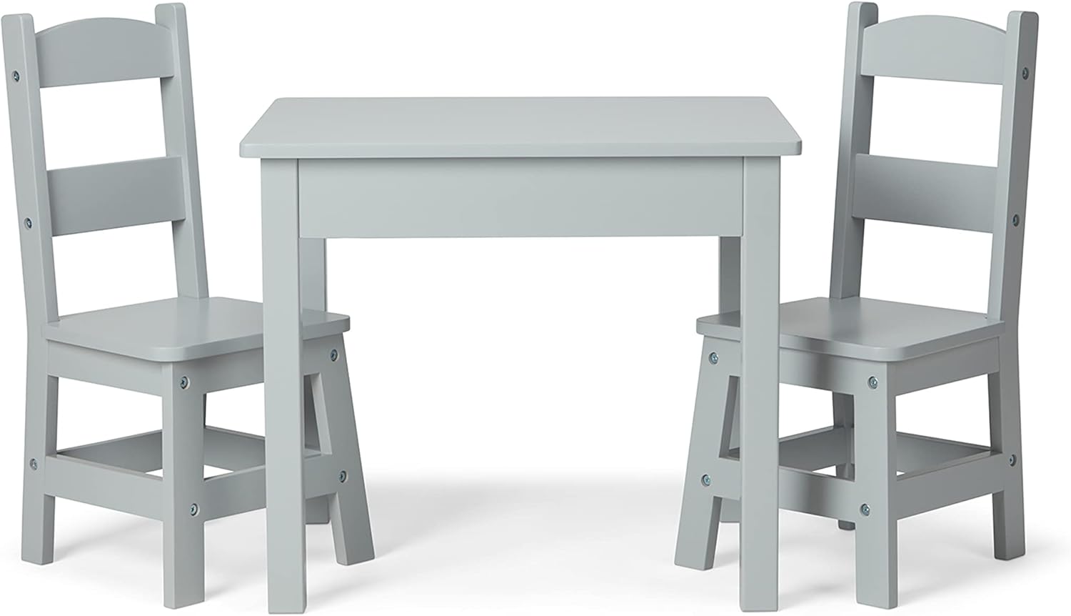 Melissa & Doug Wooden Table & Chairs-Gray Kids Furniture , Grey