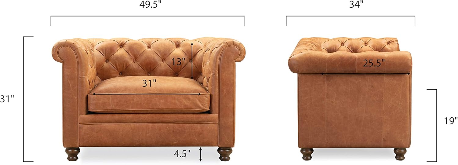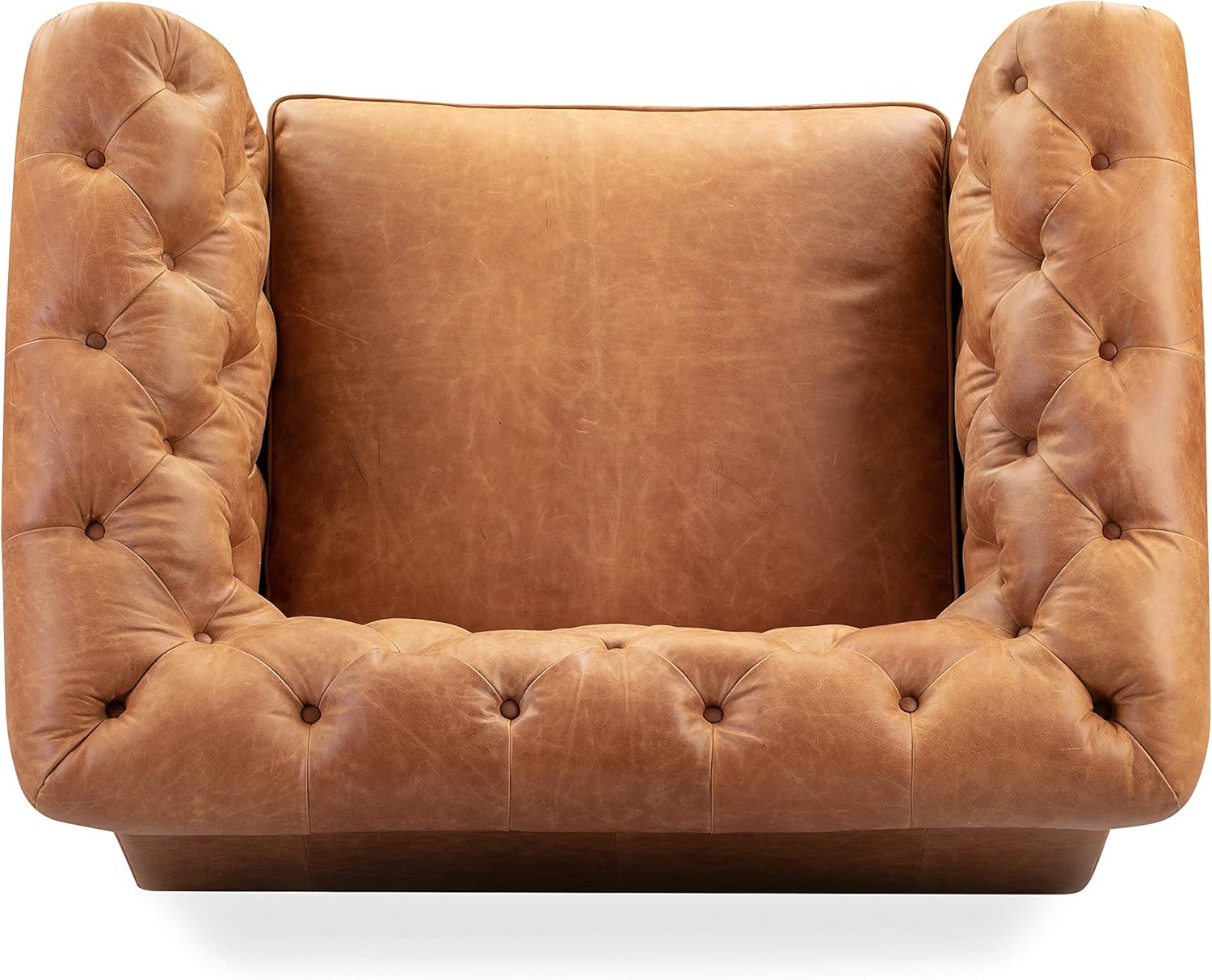 - Wrapped in real leather that wears in, not out: This is full-grain, pure-aniline Italian leather in Cognac Tan. It’s soft right out of the box and only gets better with time. No artificial finishes or plastic coatings, just leather the way it’s meant to be. Natural marks, wrinkles and tonal variation make every chair unique, and the patina deepens beautifully with everyday use. It’s the kind of material that doesn’t mind being lived in. In fact, that’s exactly what it’s here for.