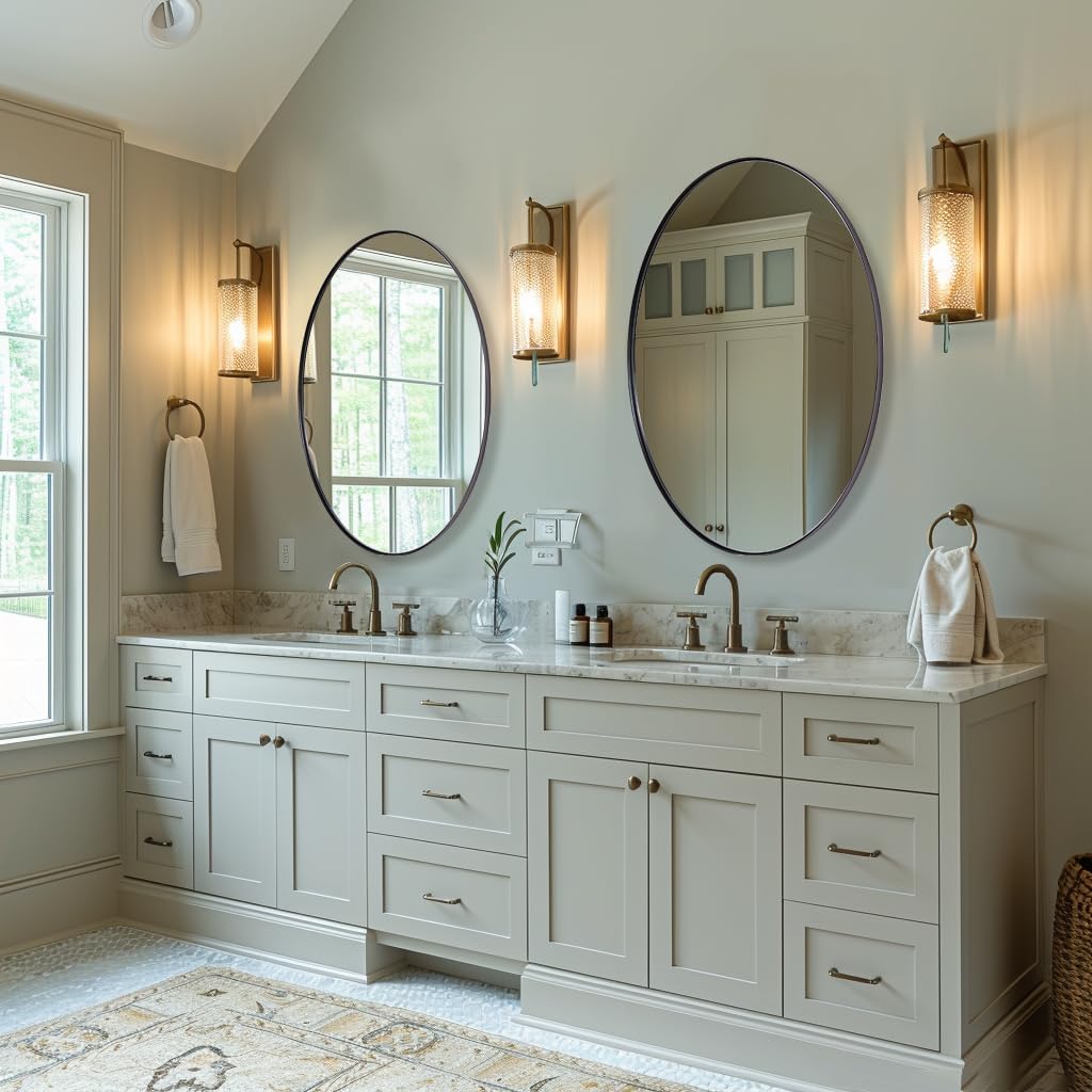 - Build Your Bathroom Space with Andy Star: Oval mirrors soften straight edges; 22x30 Inch mirror is perfect for small bathrooms; choose from our beautiful design; hang this black mirror vertically or horizontally to enhance your newly remodeled space