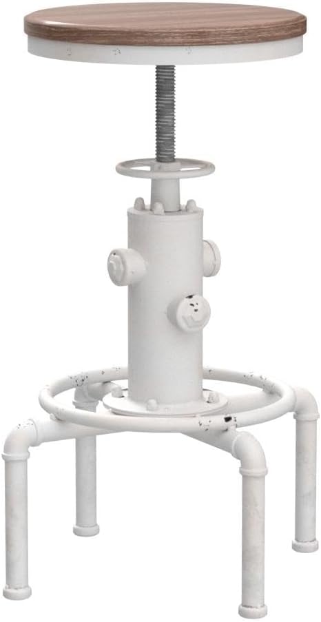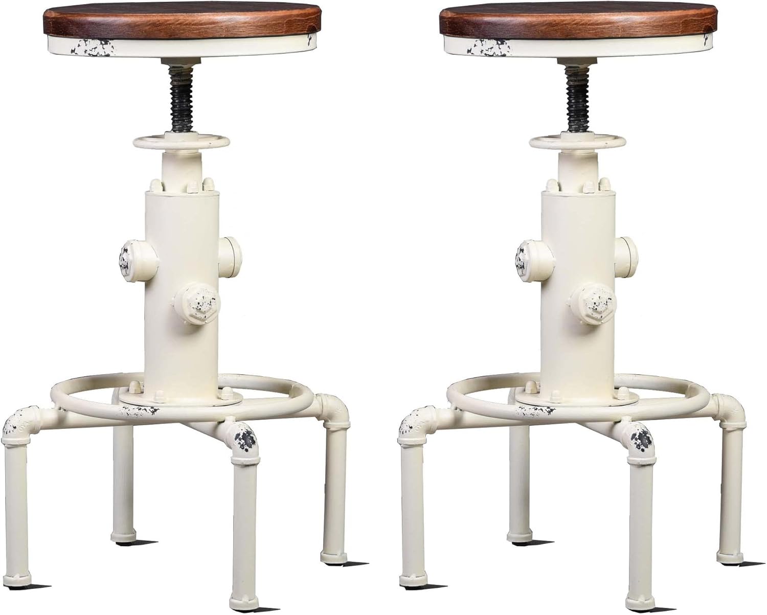 Topower Aged Antique Vintage Industrial Barstool Solid Wood Water Pipe Fire Hydrant Design Cafe Coffee Industrial Bar Stool Set of 2 Antique White