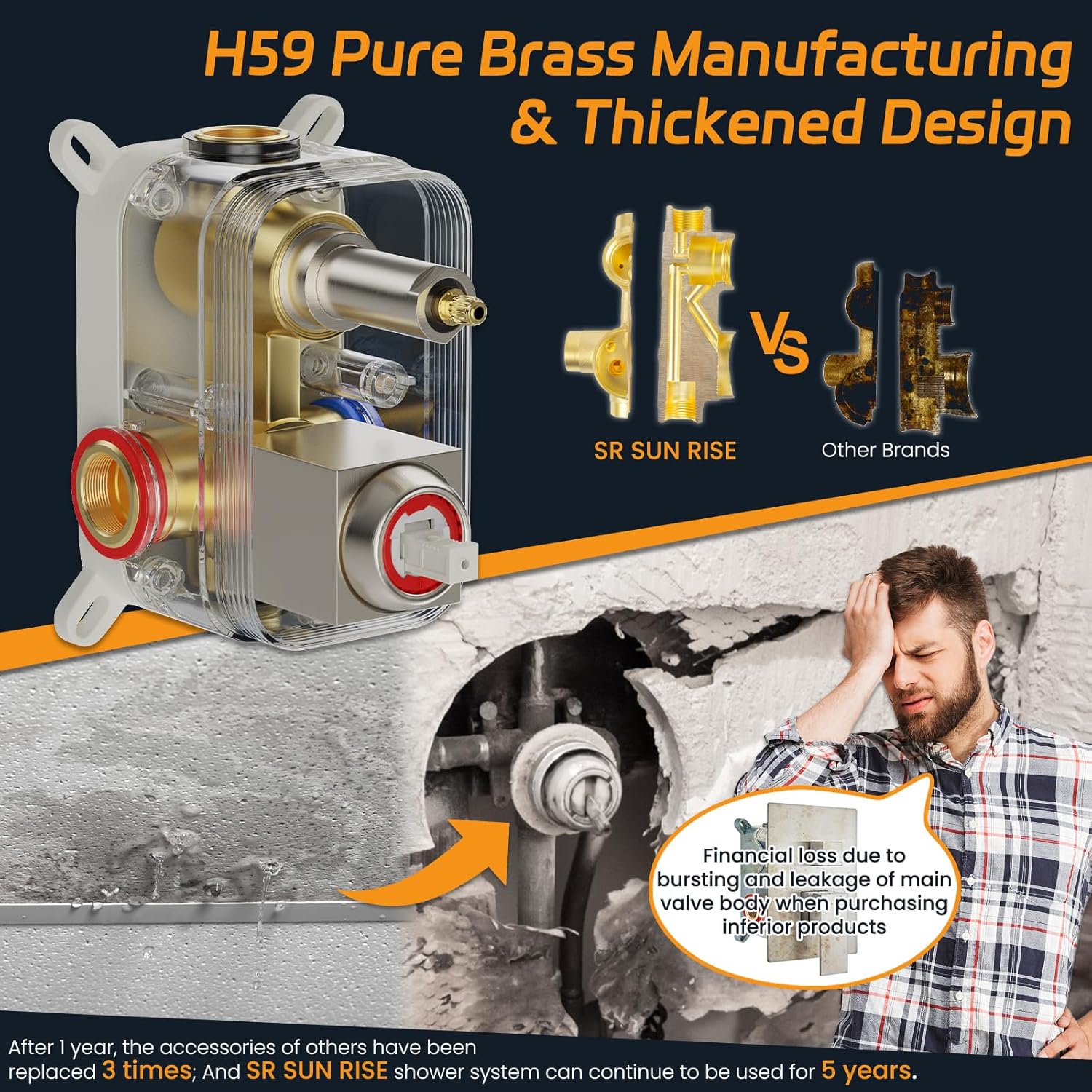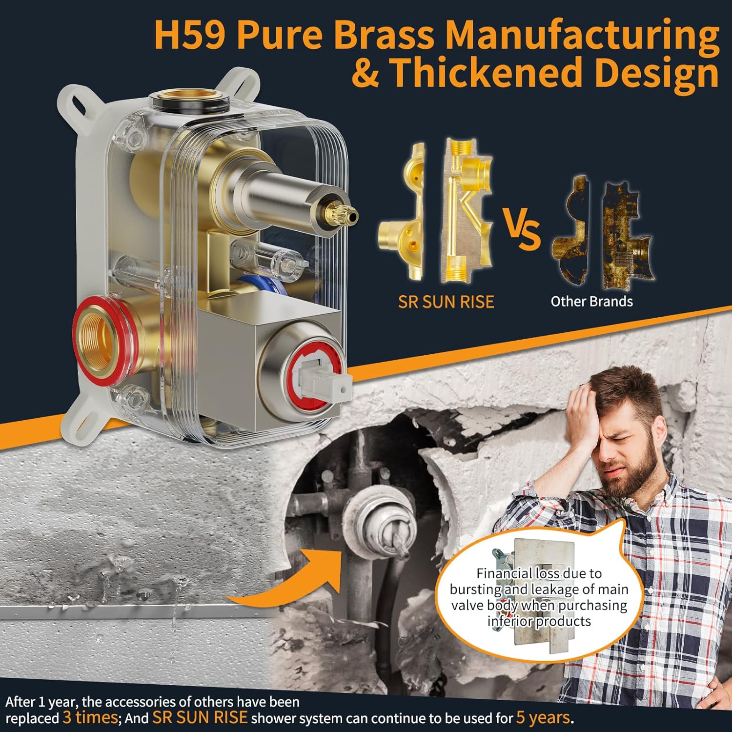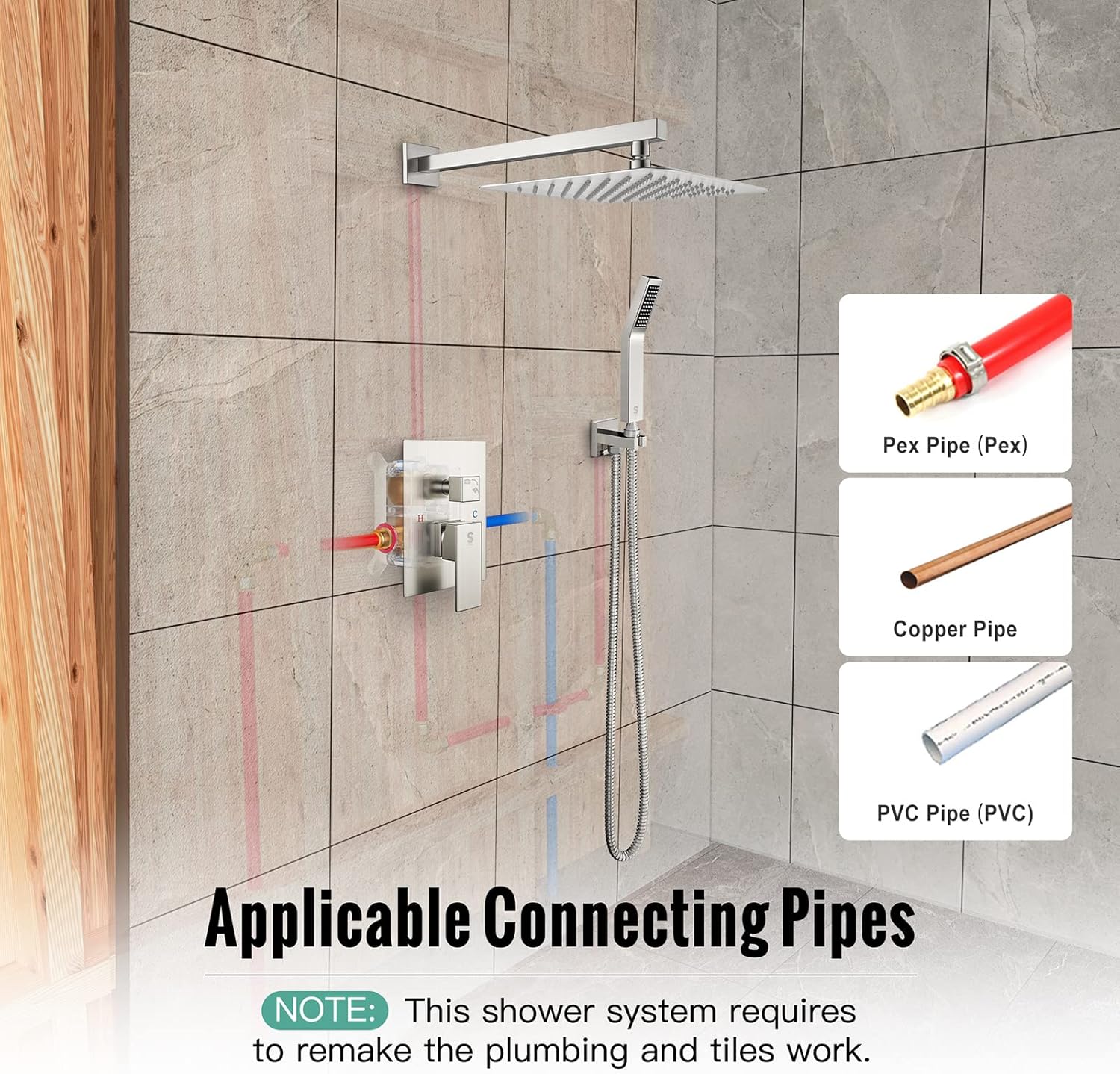 - Reliable Support & Certified Safety: Backed by 24/7 customer support, this Rain Shower Head and Handle Set ensures a stress-free experience. It features a cUPC certified pressure balance valve with built-in check valves to monitor water pressure and prevent scalding, approved by the California Energy Commission for standard 1/2-inch US pipe connections.