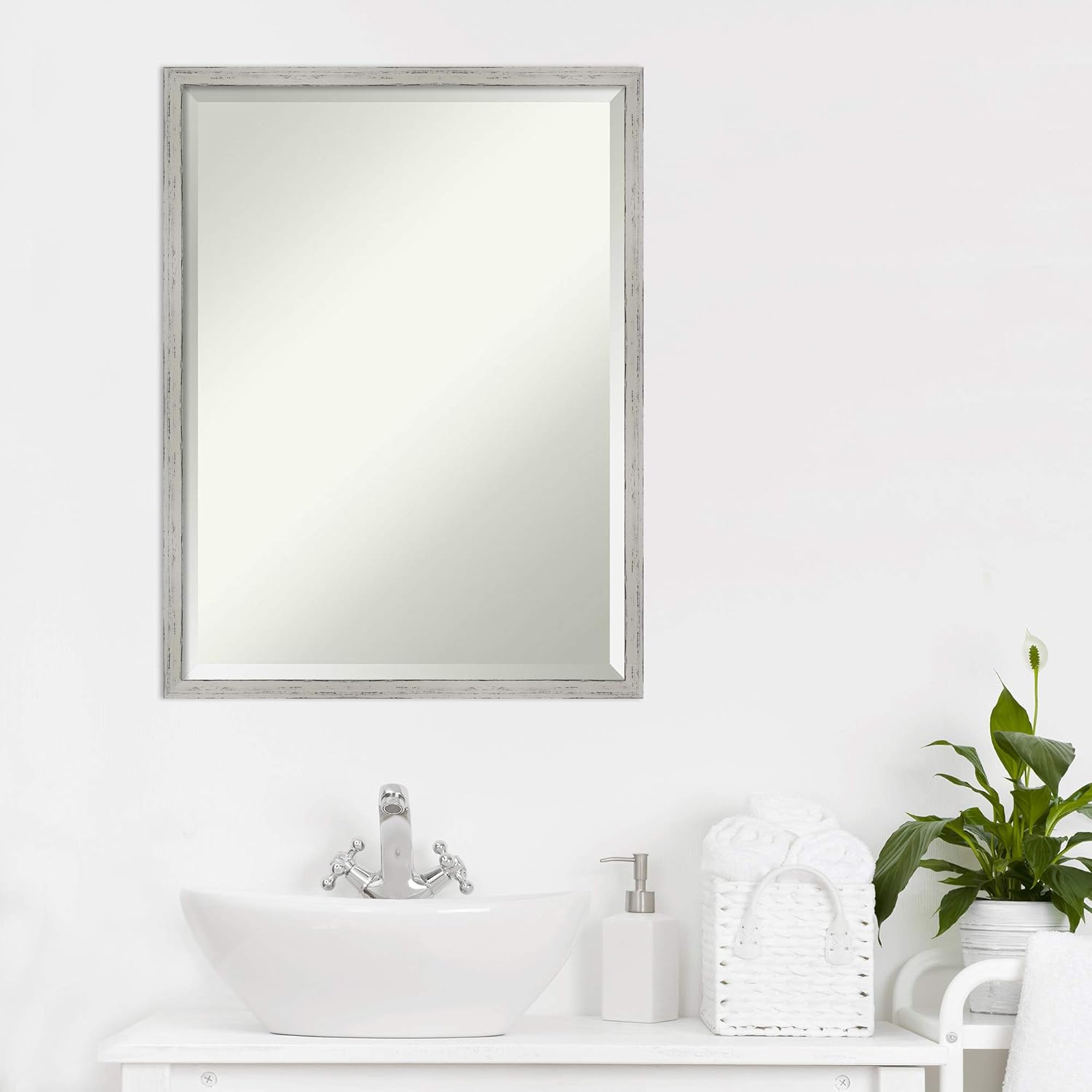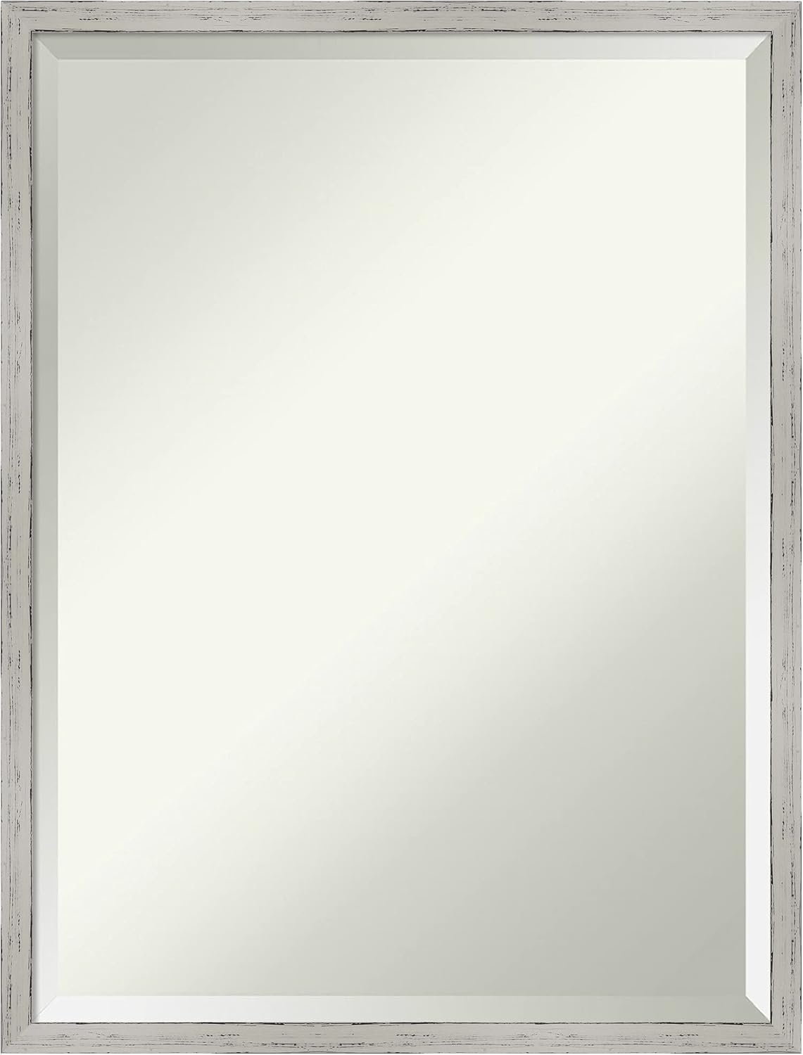 Amanti Art White Bathroom Mirror for Over Sink, 25x19 Shiplap White Narrow Rectangle Vanity Mirror, Medium Coastal Wood Frame, Hangs Horizonally and Vertically, Bathroom Wall Decor, Beveled Edge