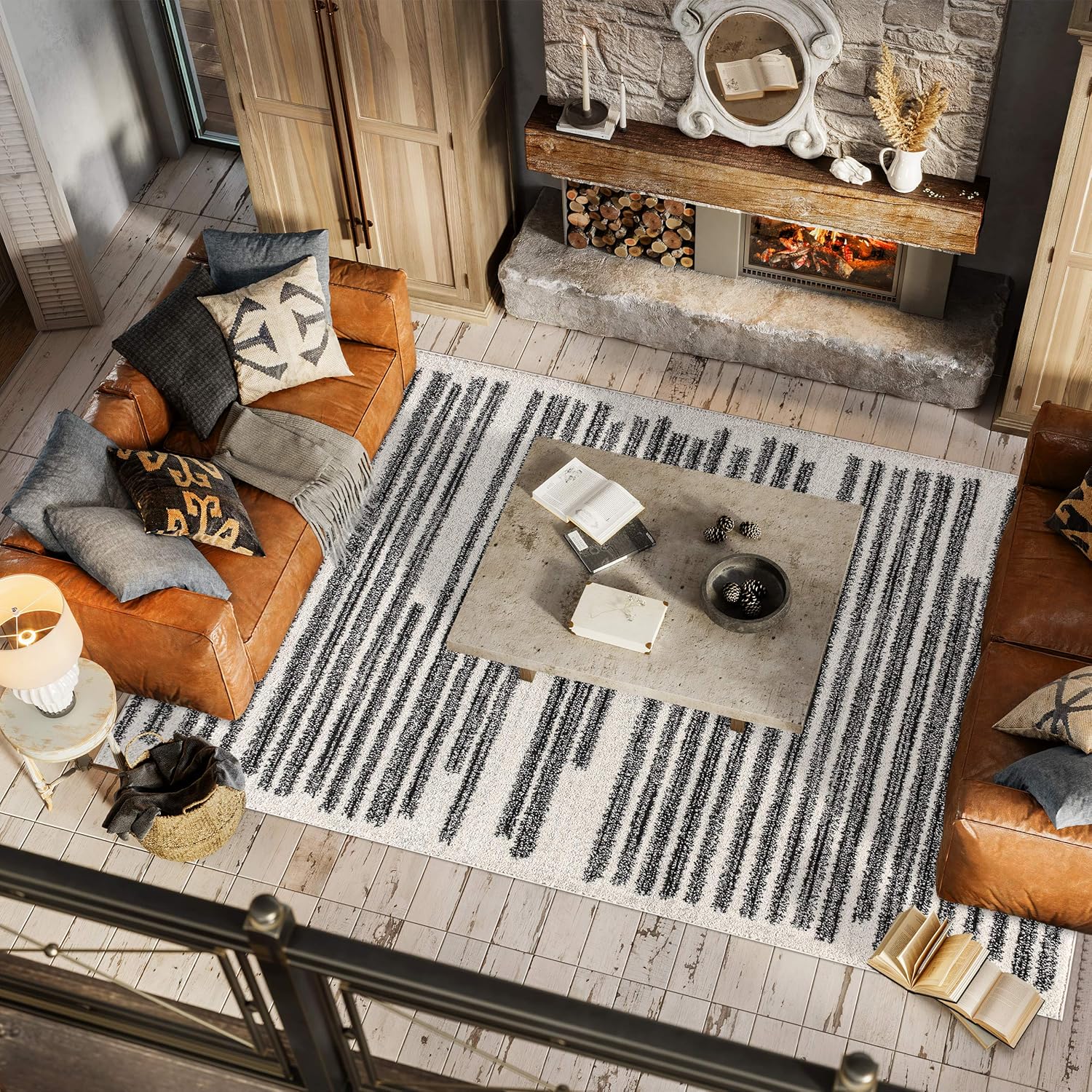 JONATHAN Y Khalil Modern Berber Stripe Cream/Black Indoor Area Rug, 4x6, Contemporary, Bohemian, Easy-Cleaning for Living Room, Bedroom, Kitchen, Pet Friendly, Non-Shedding (MOH207A-4)