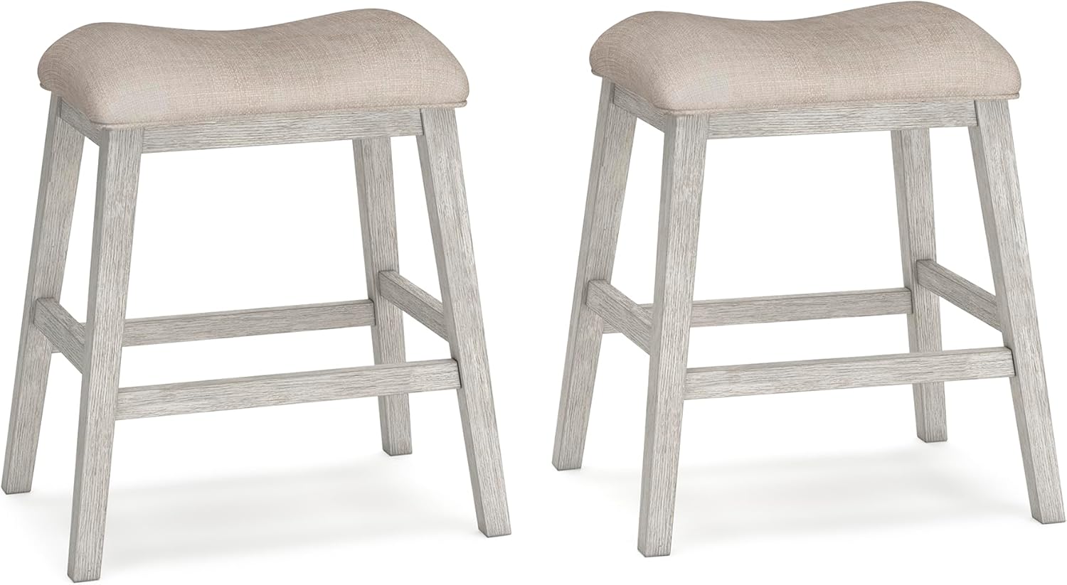 Signature Design by Ashley Skempton Modern 24" Counter Height Upholstered Barstool, 2 Count, Whitewash