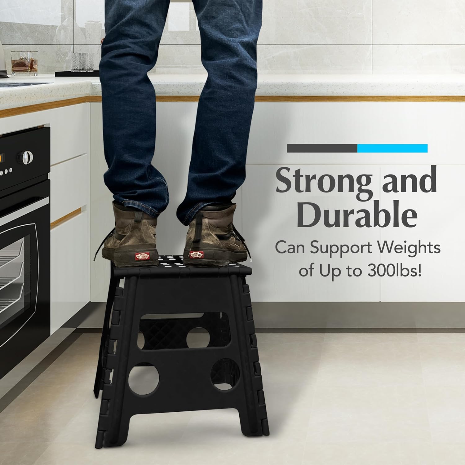 Handy Laundry Folding Lightweight Step Stool - Sturdy Enough to Support Adults and Safe Enough for Kids - Opens Easy with One Flip - Great for Kitchen, Bathroom or Bedroom (Black- 13 inch)