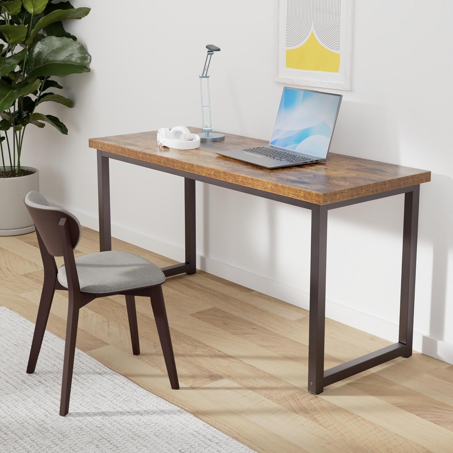TOPSKY 59" Big Large Computer Office Desk 1.88" Thickness Desktop (Rustic Brown)