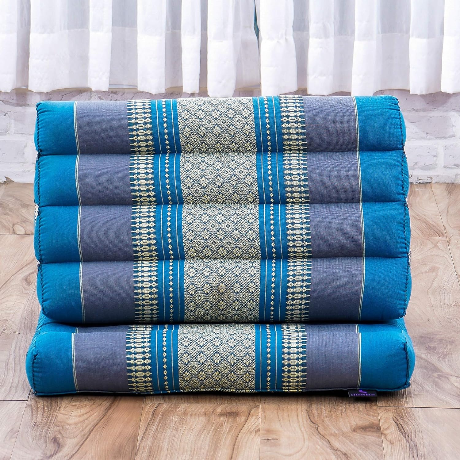 - Material: The Thai triangle pillow and the floor mat for adults is filled with kapok. The breathable fiber used for the floor cushions allow for a pleasant and comfortable seating position