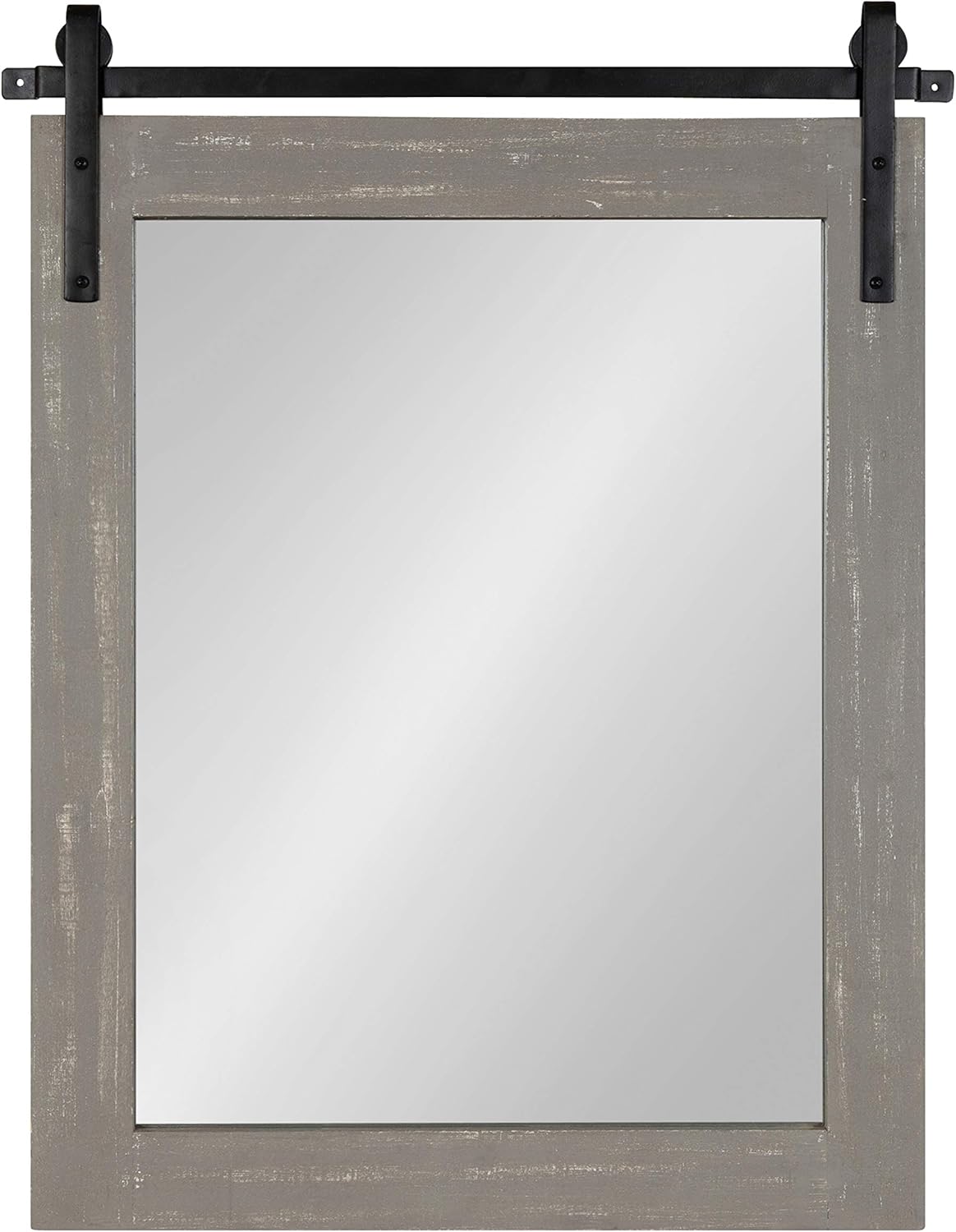 Kate and Laurel Cates Rustic Wall Mirror, 22" x 30" Rustic Gray, Farmhouse Barn Door-Inspired Wall Decor