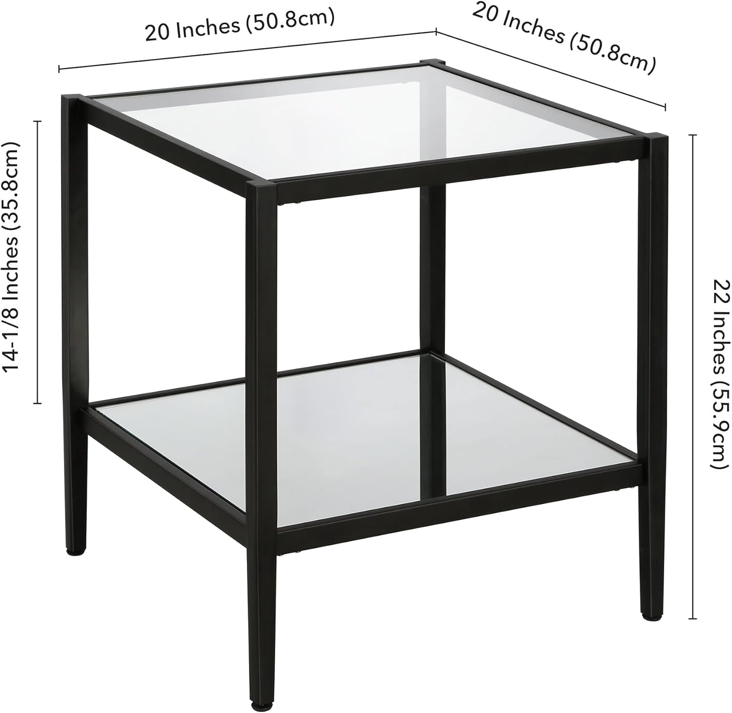 Henn&Hart 20" Wide Square Side Table with Mirror Shelf in Blackened Bronze, Table for Living Room, Bedroom