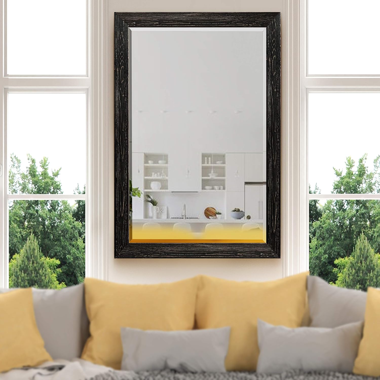 - BEAUTIFUL & ELEGANT. Glamourous beveled edge mirror has a clean and sleek surface, perfect for both vintage and contemporary rustic farmhouse environments. Mirrors make small rooms look larger. Elevate your living room, family room, bedroom, closet, entryway, dining room or hall with this affordably priced large mirror.