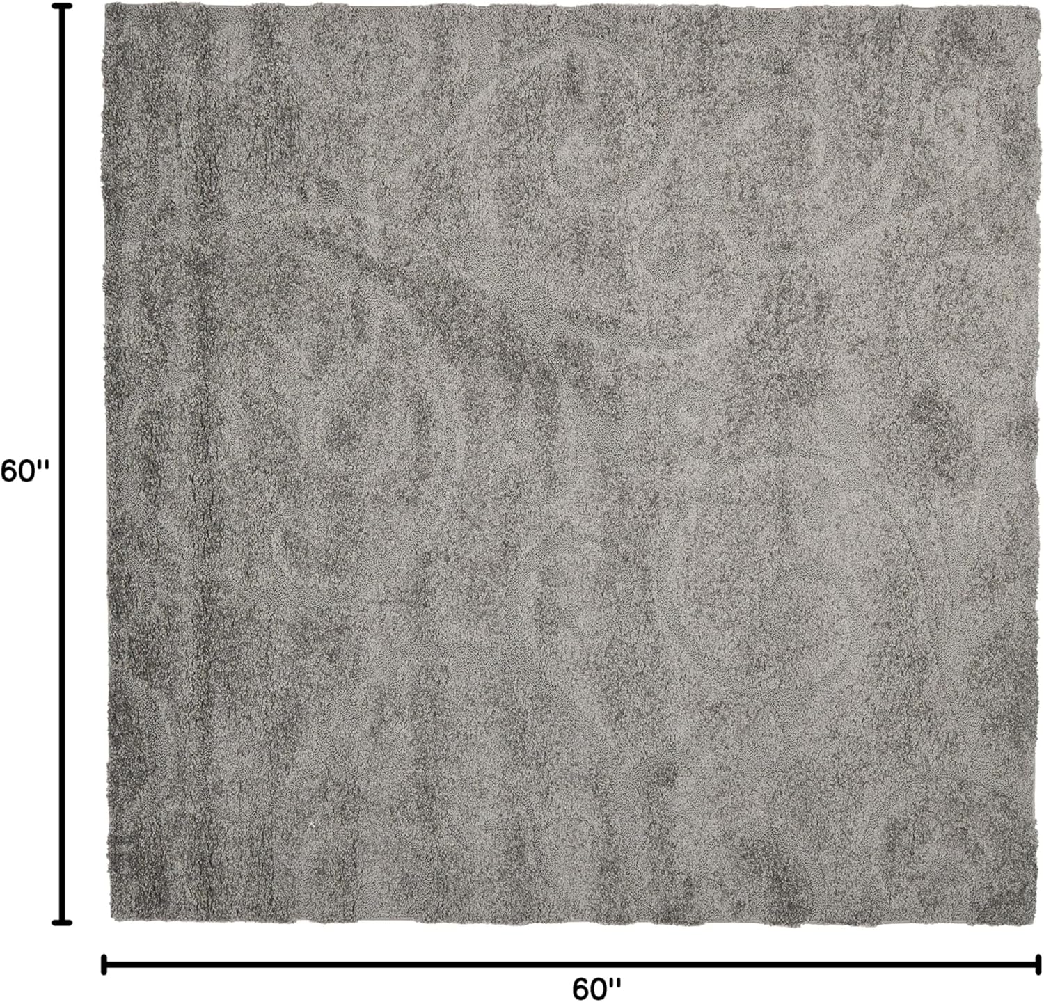 SAFAVIEH Florida Shag Collection Area Rug - 5' Square, Grey, Scroll Design, Non-Shedding & Easy Care, 1.2-inch Thick Ideal for High Traffic Areas in Living Room, Bedroom (SG455-8013)