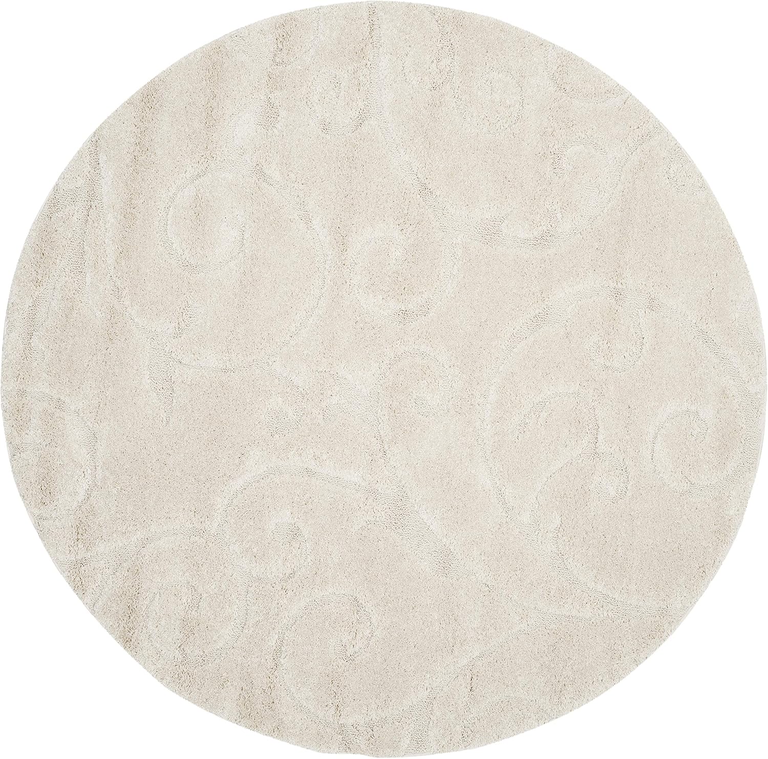 SAFAVIEH Florida Shag Collection Area Rug - 10' Round, Creme & Creme, Scroll Design, Non-Shedding & Easy Care, 1.2-inch Thick Ideal for High Traffic Areas in Living Room, Bedroom (SG455-1111)