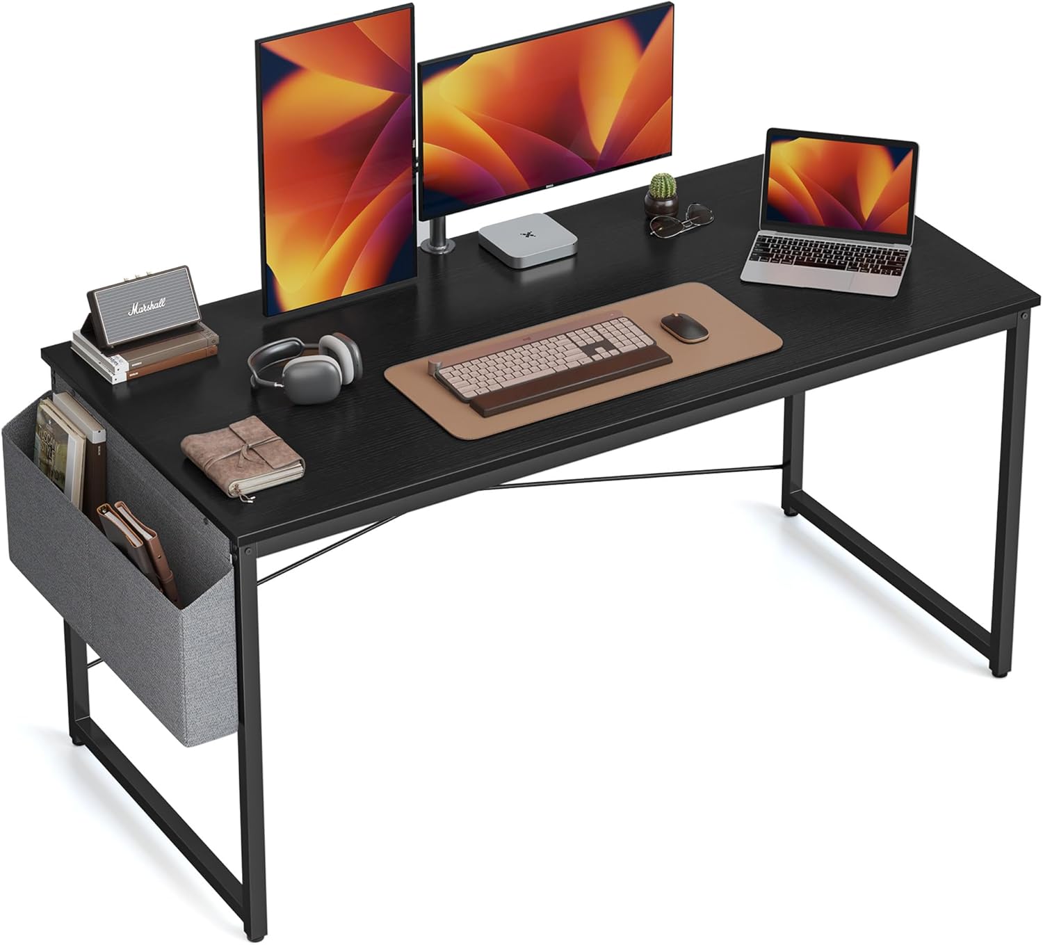 Cubiker Computer Desk 63 inch Home Office Writing Study Desk, Modern Simple Style Laptop Table with Storage Bag, Black