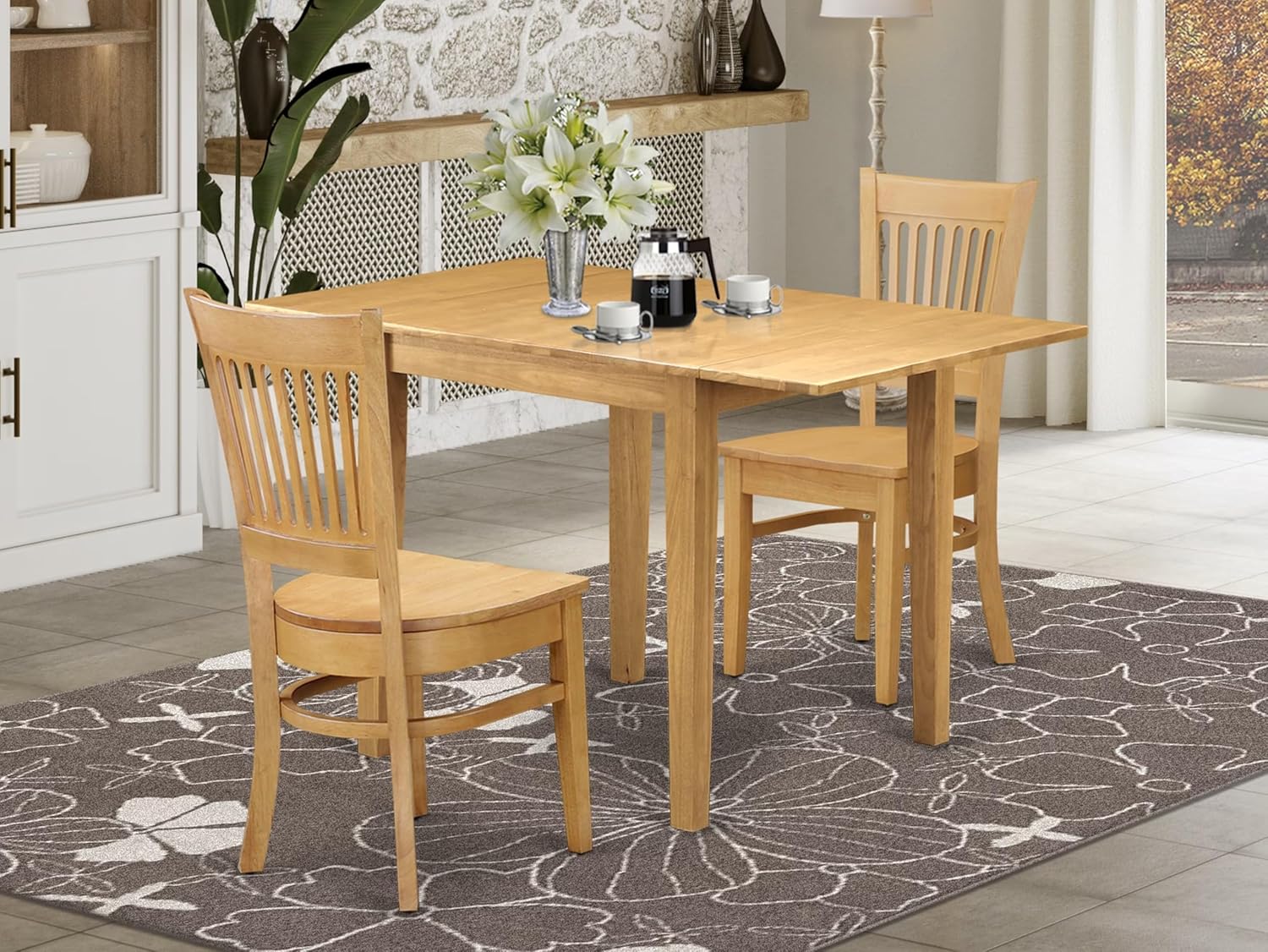East West Furniture NDVA3-OAK-W 3 Piece Modern Dining Table Set Contains a Rectangle Wooden Table with Dropleaf and 2 Dining Chairs, 30x48 Inch, Oak