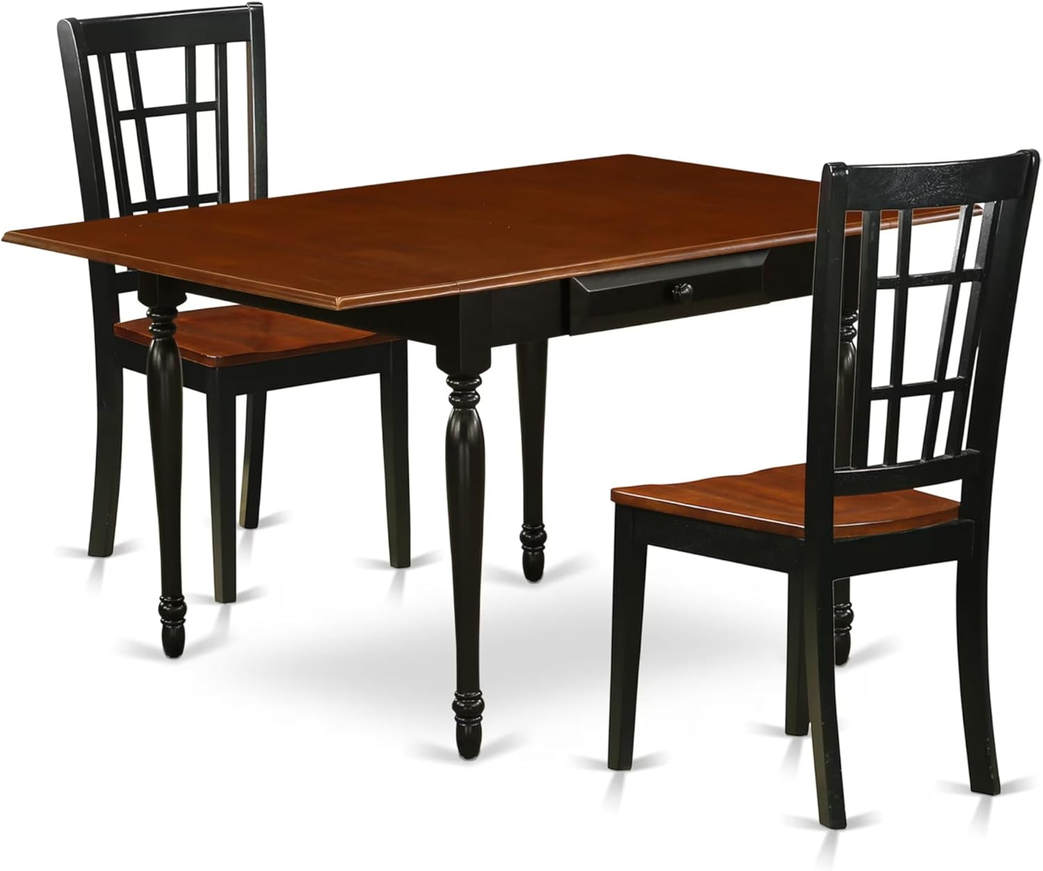East West Furniture MZNI3-BCH-W 3 Piece Dining Table Set for Small Spaces Contains a Rectangle Dining Room Table with Dropleaf and 2 Wood Seat Chairs, 36x54 Inch, Black & Cherry