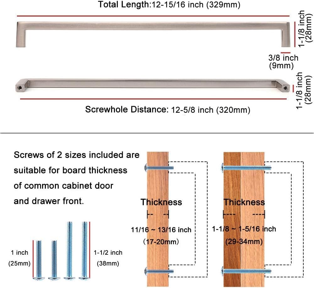 - 12-3/5" (320mm) standard screw spacing, easy installation and replacing. All pulls packed professionally and carefully for protection.