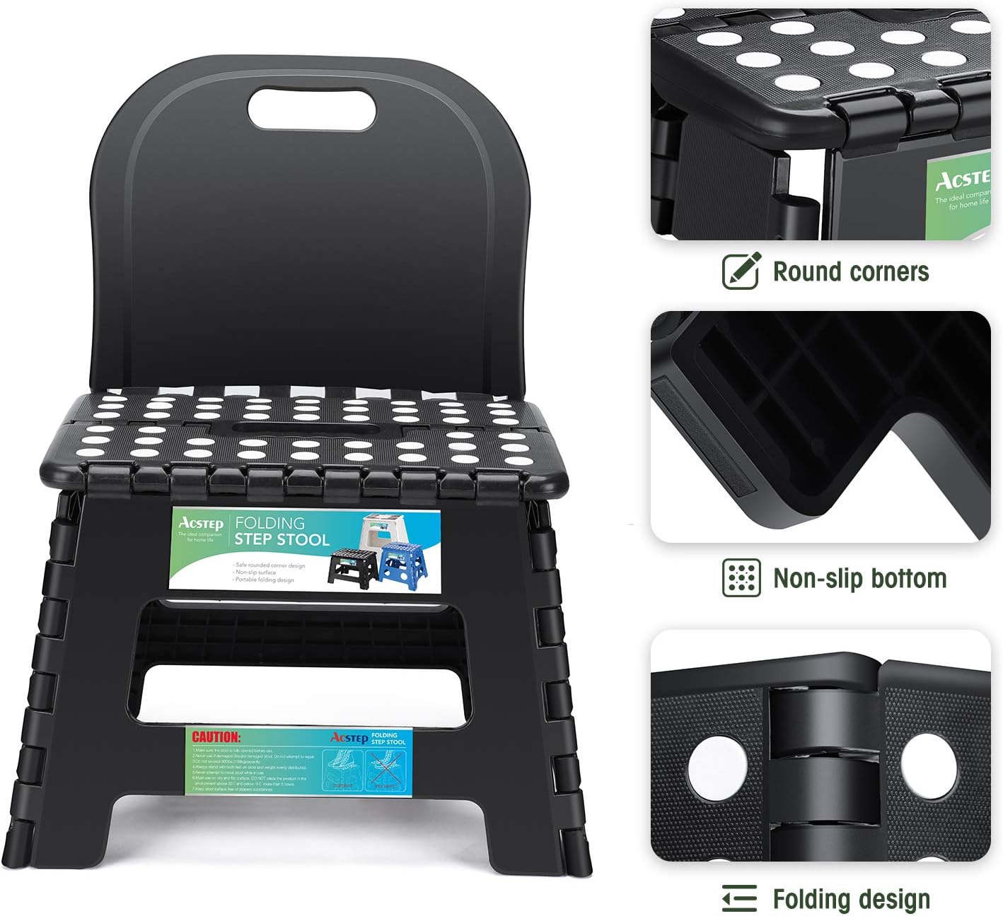 ACSTEP Folding Kids Step Stool with Back Support for Kids,9" Plastic Kids Chair for Outdoor or Indoor Kitchen Step Stools and Bathroom Stool for Toddlers Boys Girls