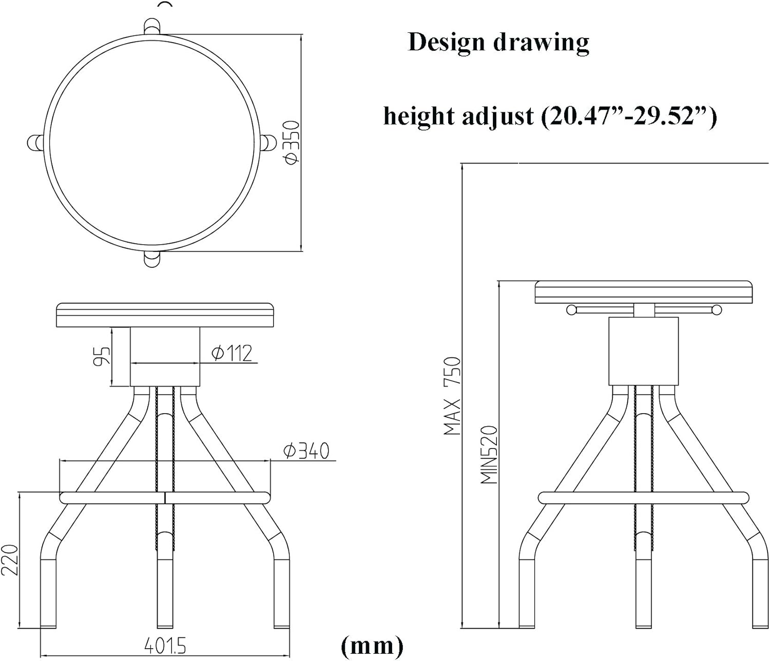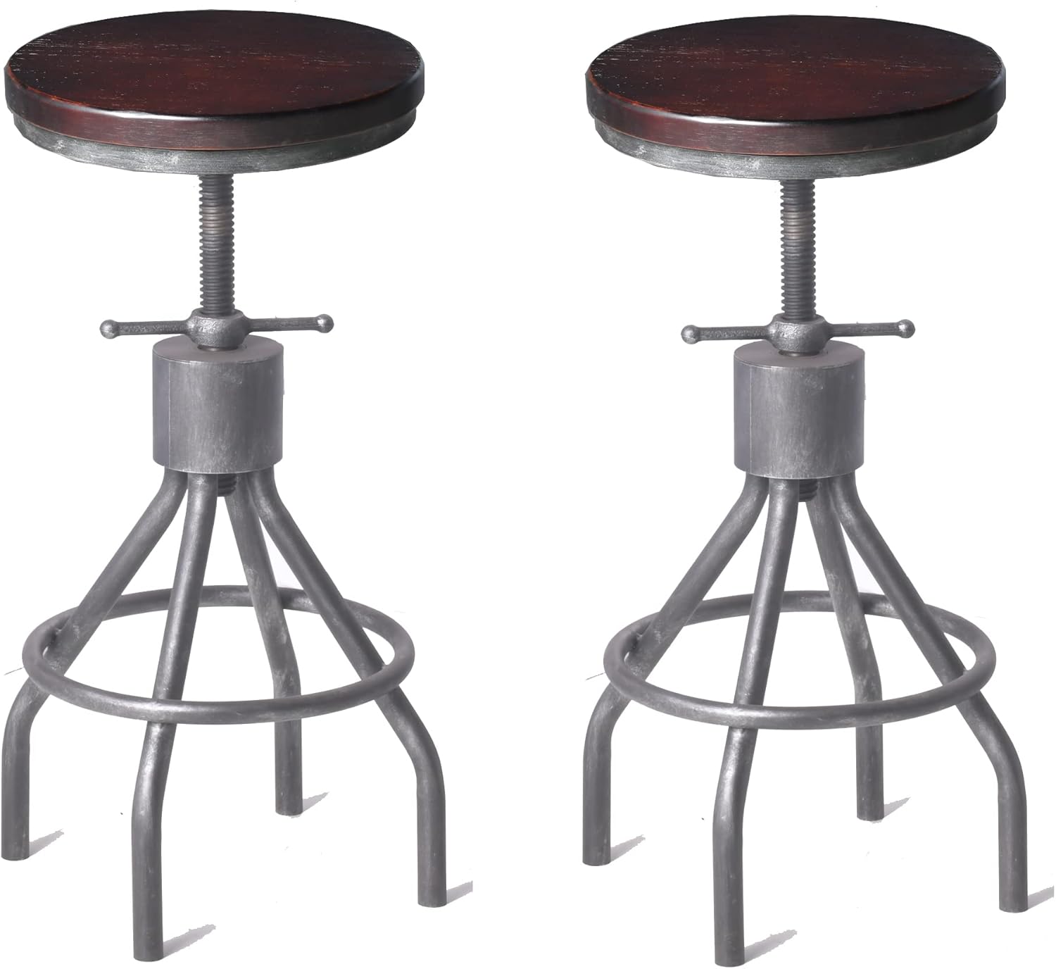 Diwhy Industrial Vintage Kitchen Counter Height Adjustable bar Stool,Farmhouse French Stylish Kitchen Stool,Swivel Bar Stool,Solid Wood Metal Stool,Easy Installation,Fully Welded Set of 2 (Silver)