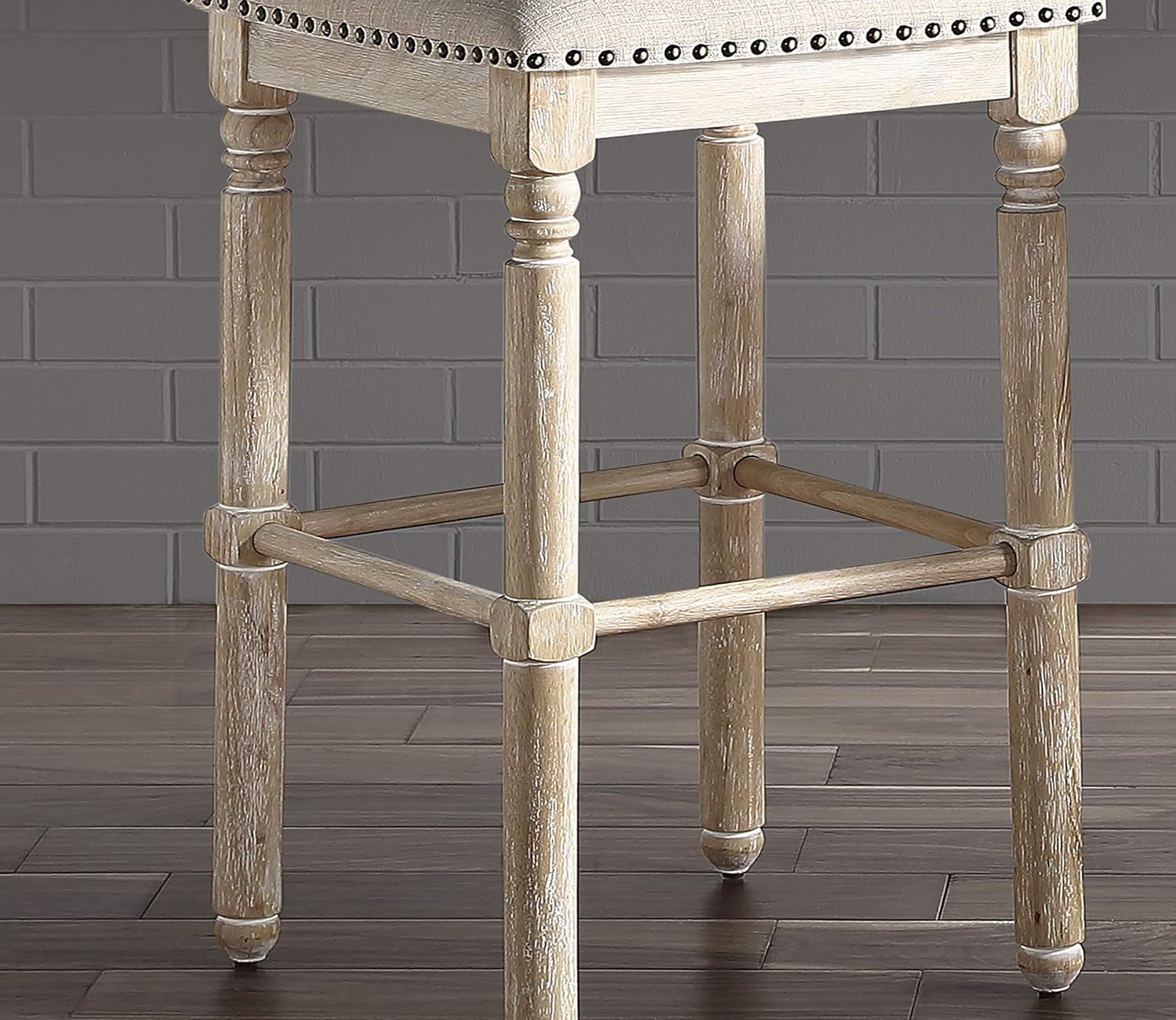 - Constructed with solid rubber wood and plywood in white-washed natural brown finish