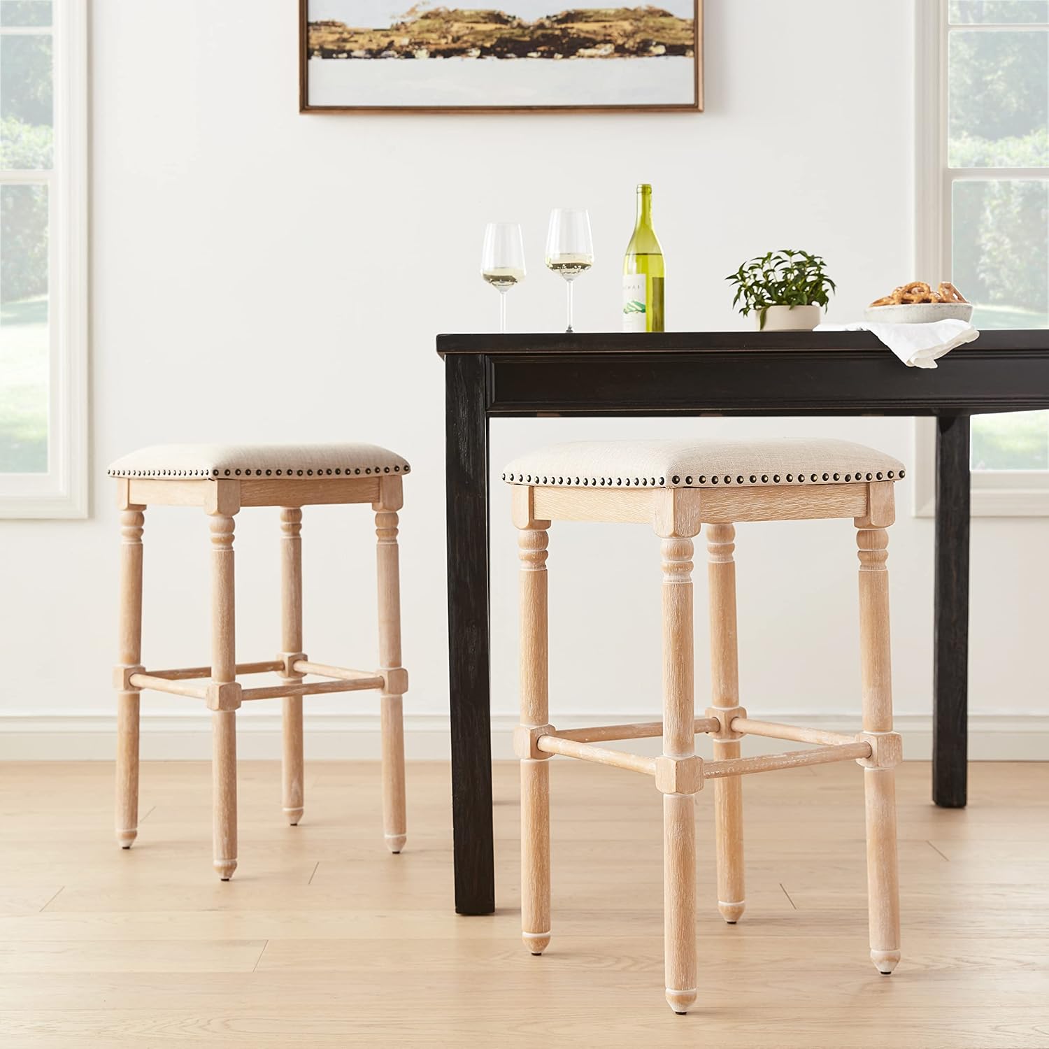 Roundhill Furniture Arnhem Wood Upholstered Swivel Bar Stools, Set of 2, Tan