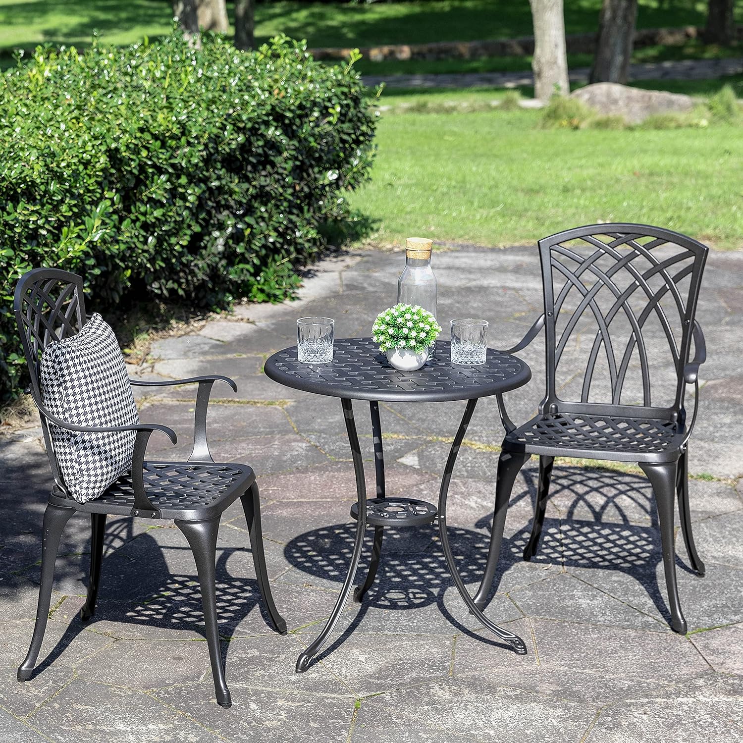 - STURDY & EASY TO ASSEMBLE: The set was easy to put together in less than 30 minutes, made of sturdy cast aluminum with a rust-resistant and waterproof finish. The maximum weight capacity of a single chair is 300lb
