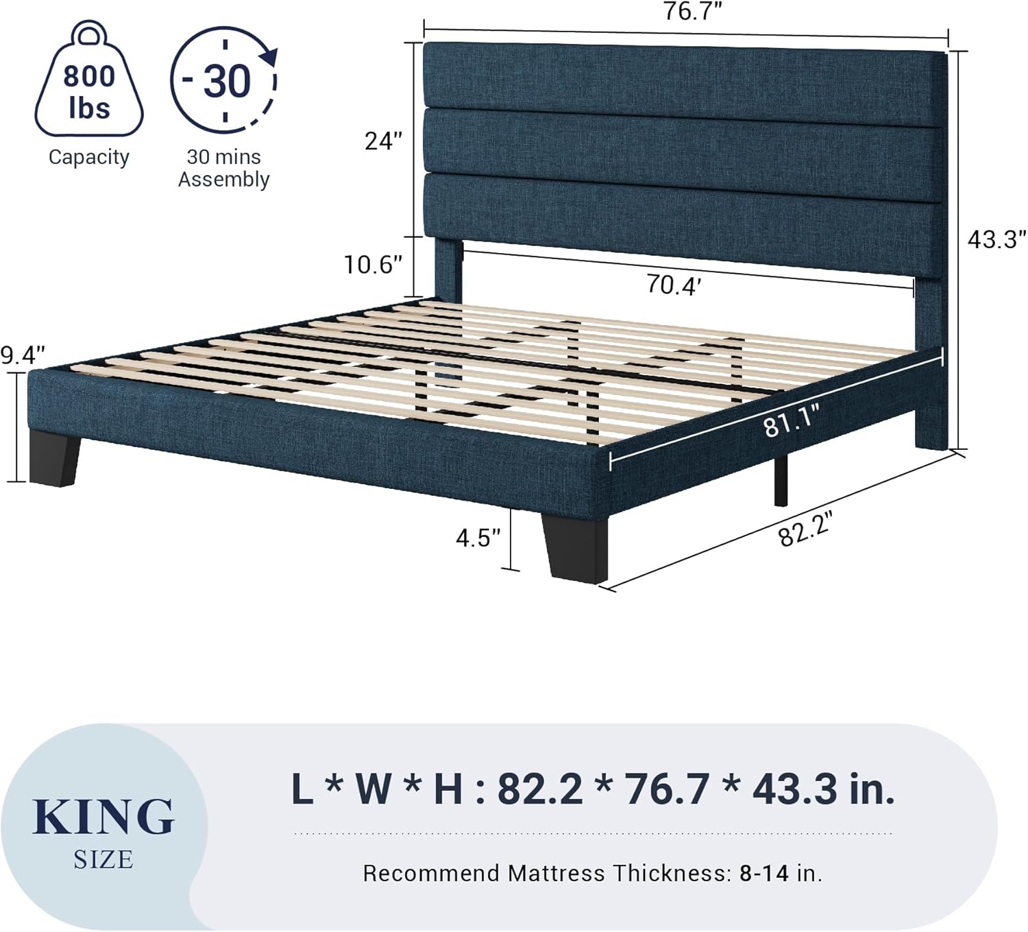 - Quality Advantage: King bed frame made of high-quality metal and wood; heavy-duty support feet with plastic plugs to care for your floor; super sturdy and durable, supports up to 800 pounds