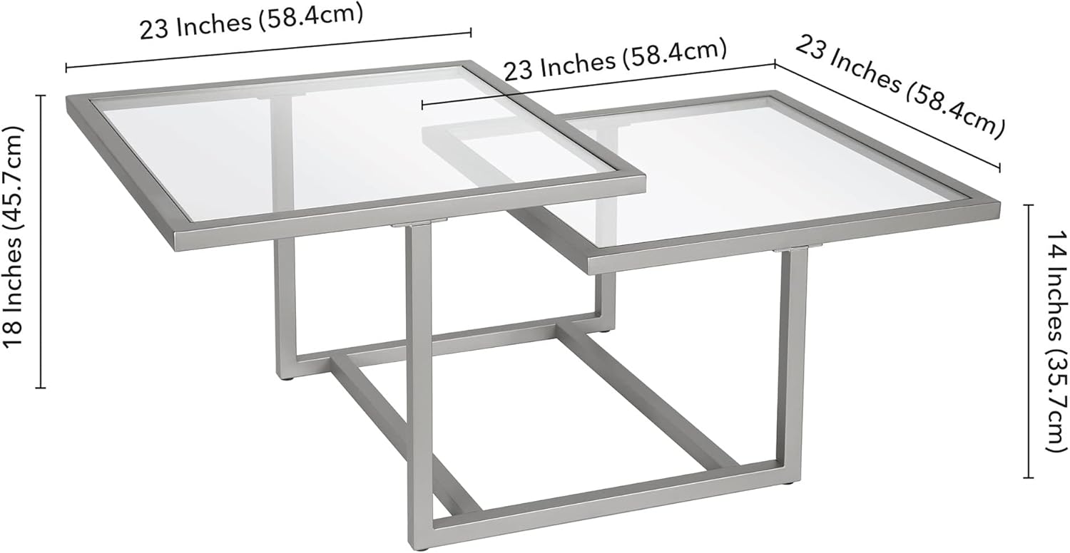 Henn&Hart 43" Wide Square Coffee Table in Nickel, Modern coffee tables for living room, studio apartment essentials